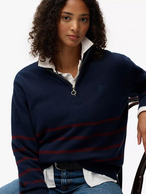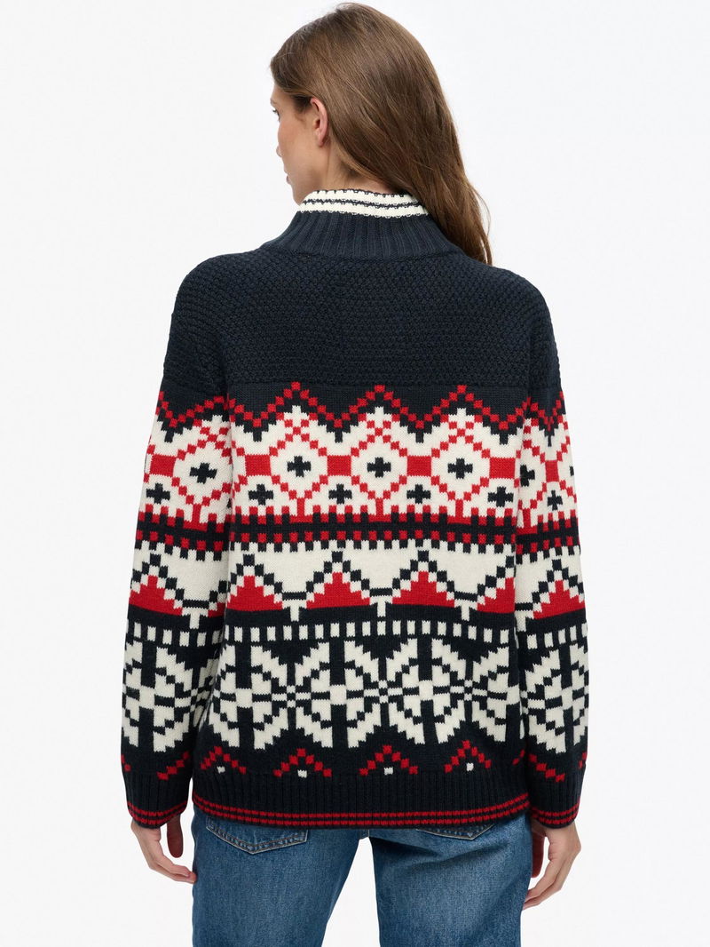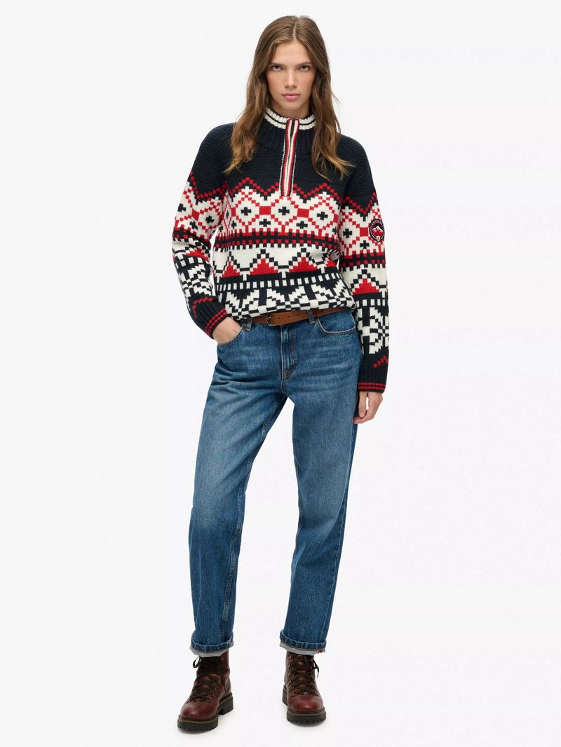 Intarsia Half Zip Jumper, Navy/Multi