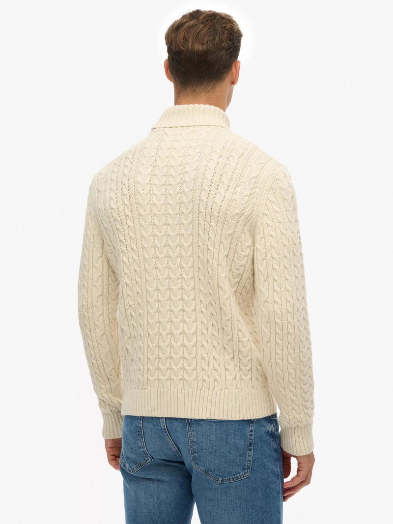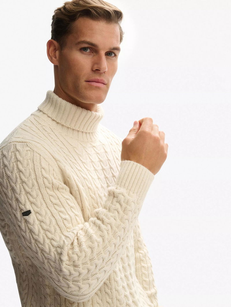 Jacob Roll Neck Cable Knit Jumper, Winter White