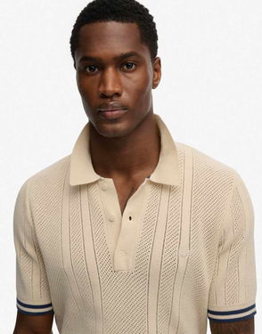 Polo collar Partial button placket Short sleeves Logo embroidery Contrast tipping Regular fit.