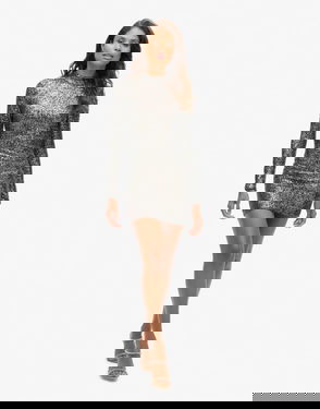 Mandarin Sequin Mini Dress In Silver Deco Sequin