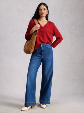 Oversized Stripe V-Neck Jumper, Bordeaux Red