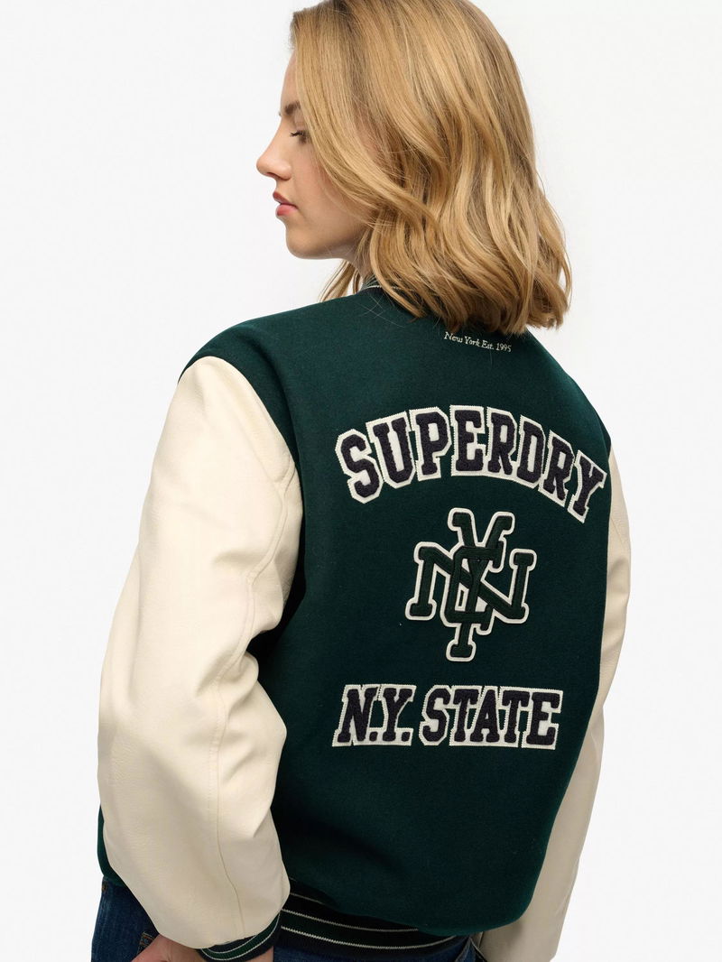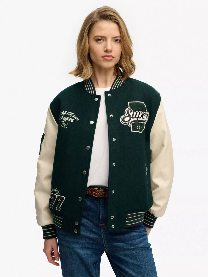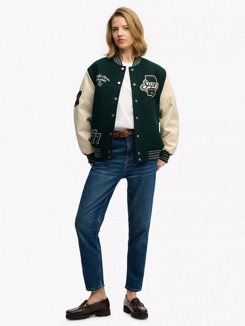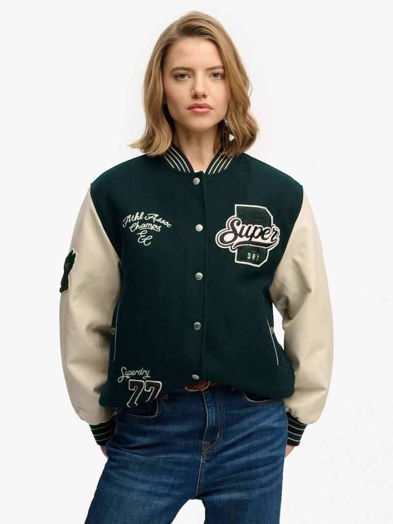 Patched Varsity Bomber Jacket, Dark Pine Green