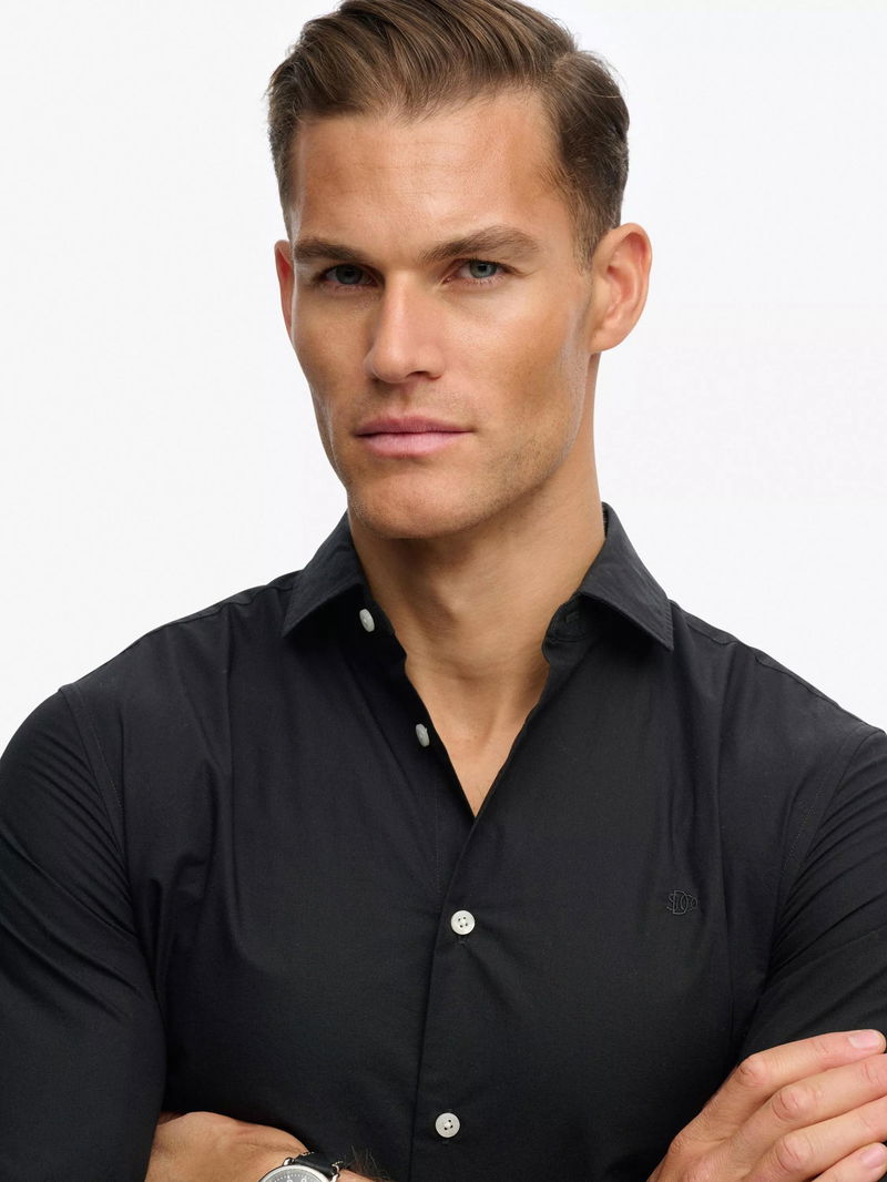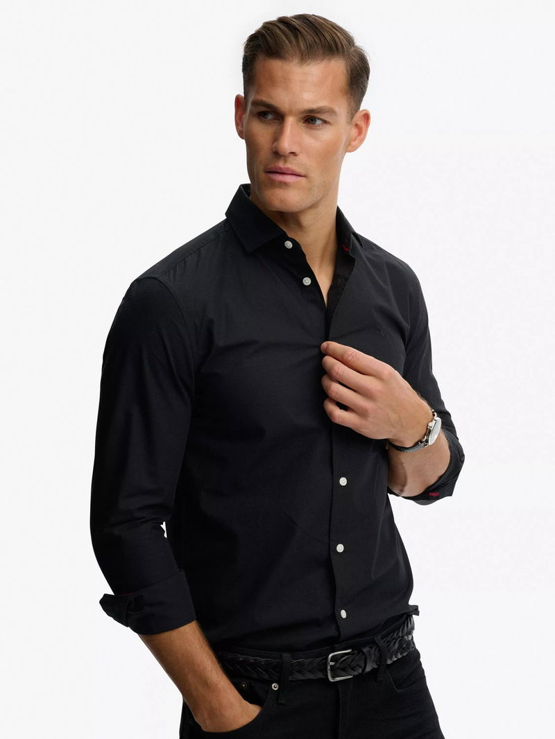 Pure Cotton Classic Tailored Long Sleeve Shirt, Black