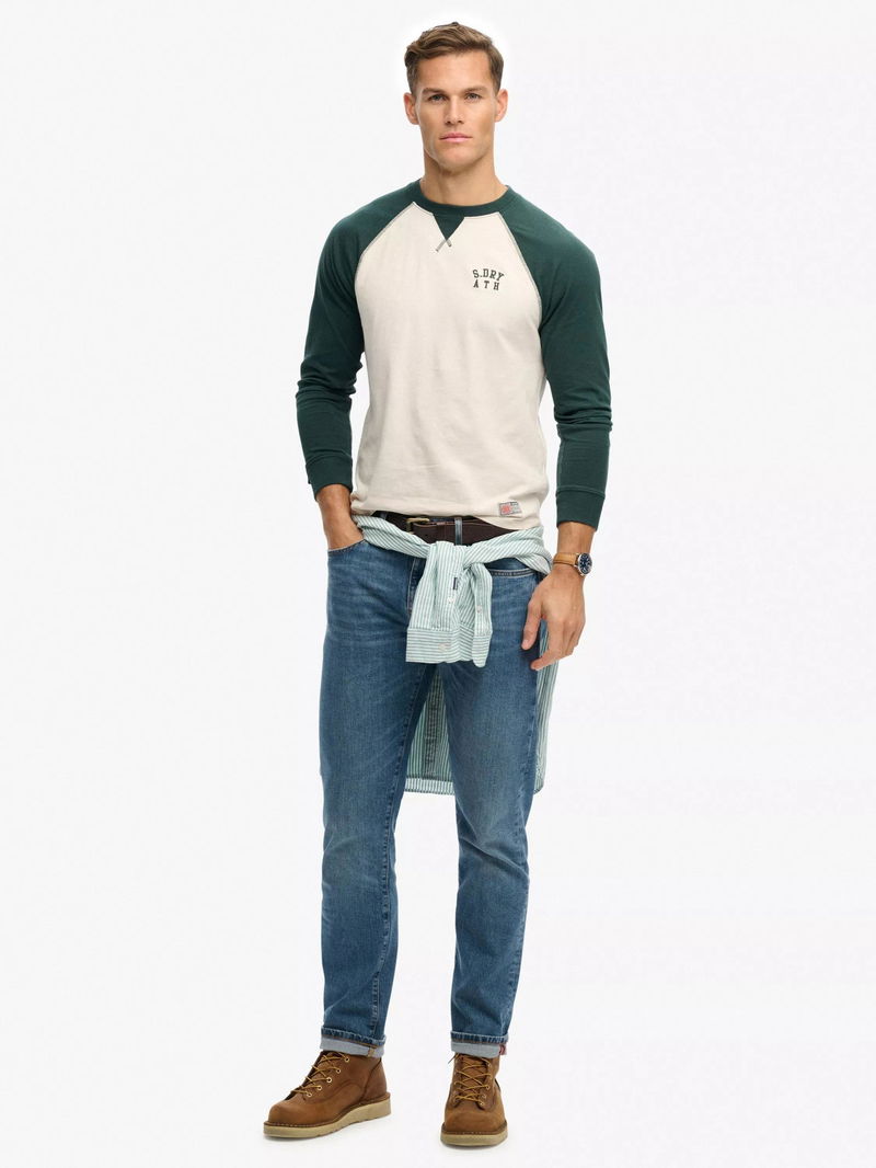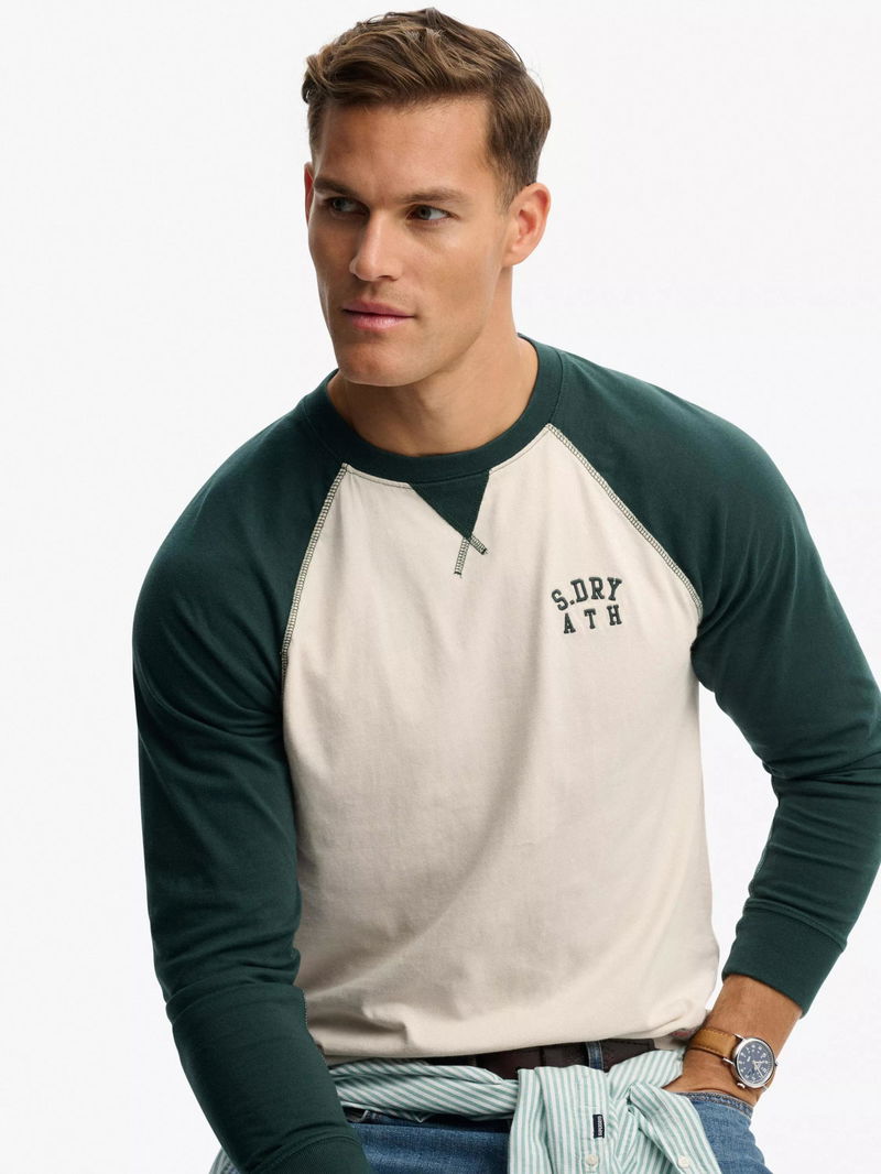 Pure Cotton Vintage Athletic Baseball Top, White Sand/Green