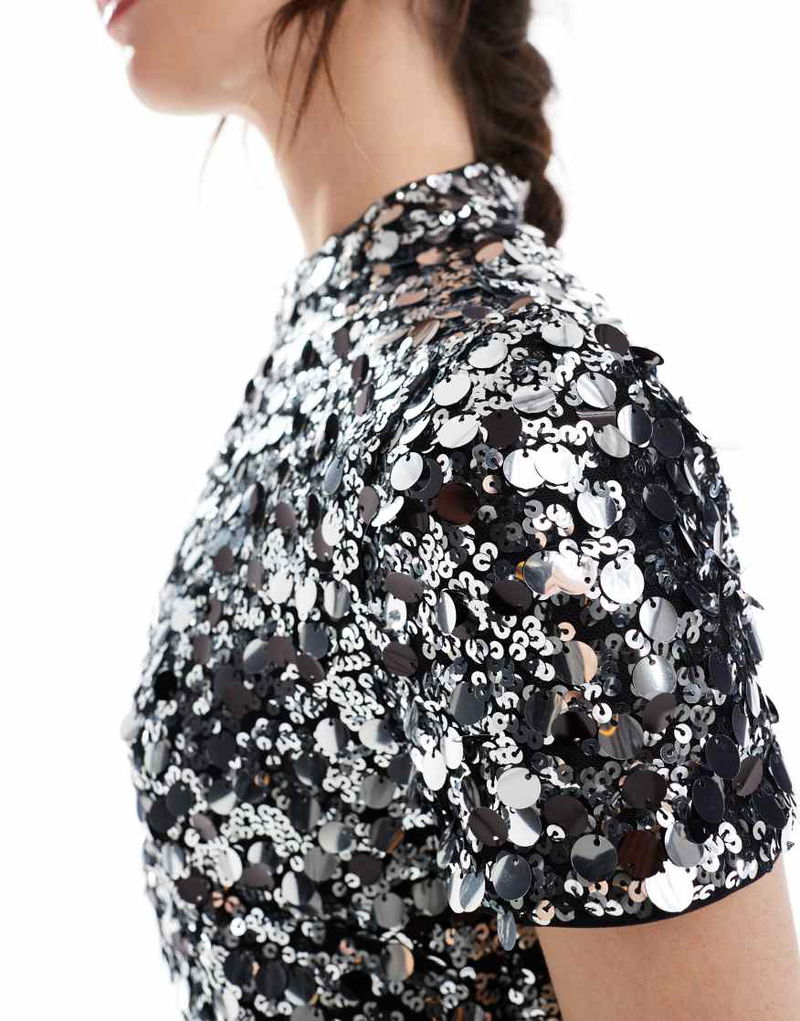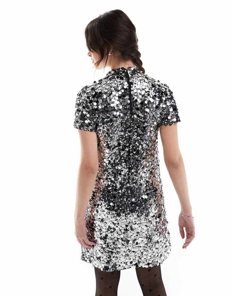 Sequin T-shirt Mini Dress In Silver Sequin
