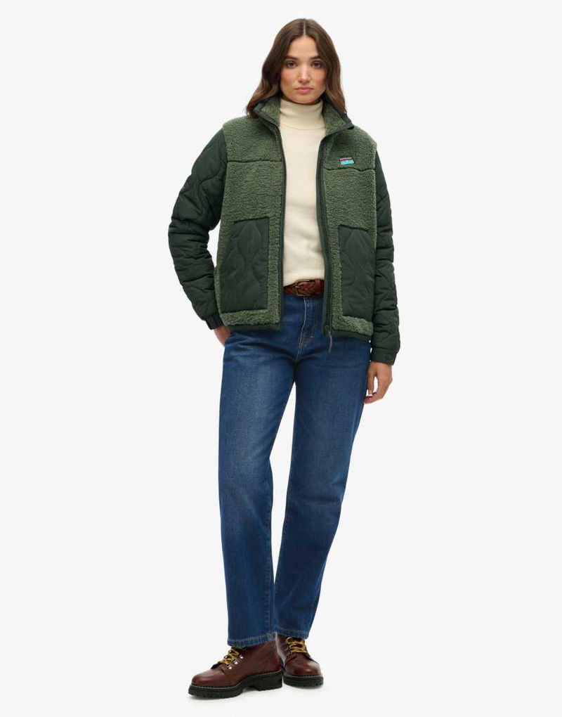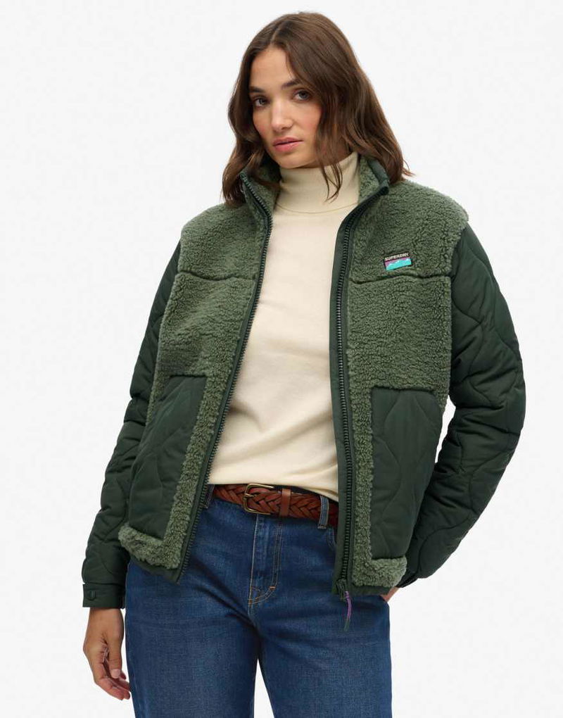 Sherpa Fleece Hybrid Jacket In Laurel Khaki