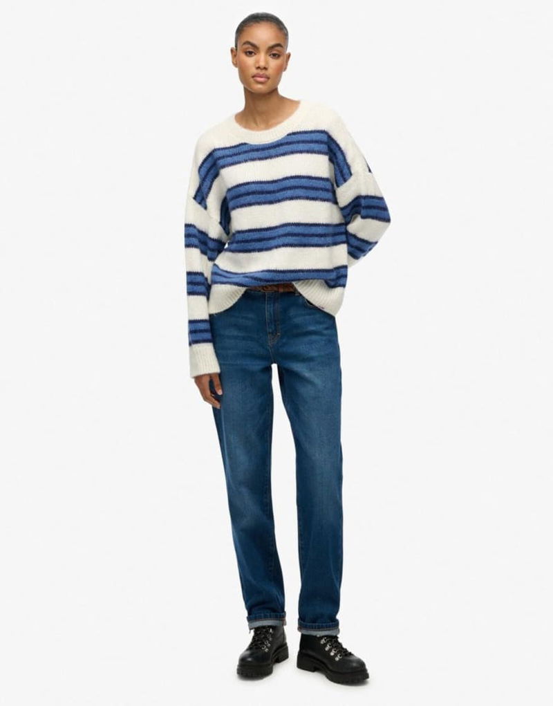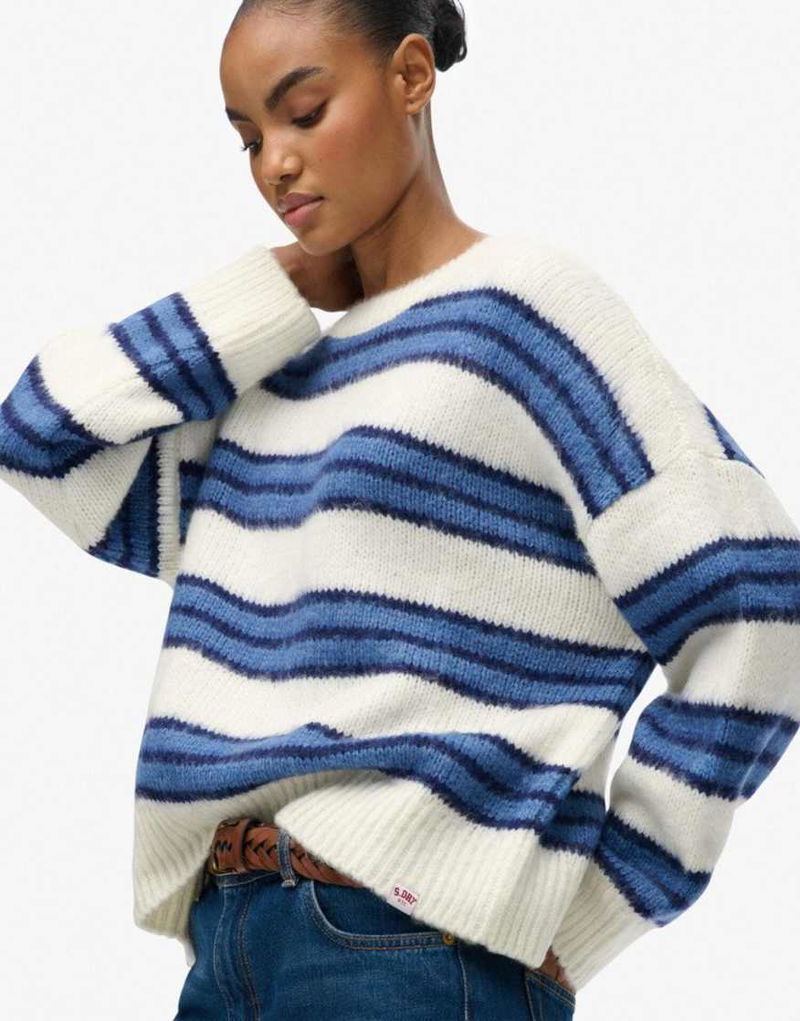 Slouchy Brushed Stripe Knit Jumper In Bleached Denim Blue Stripe
