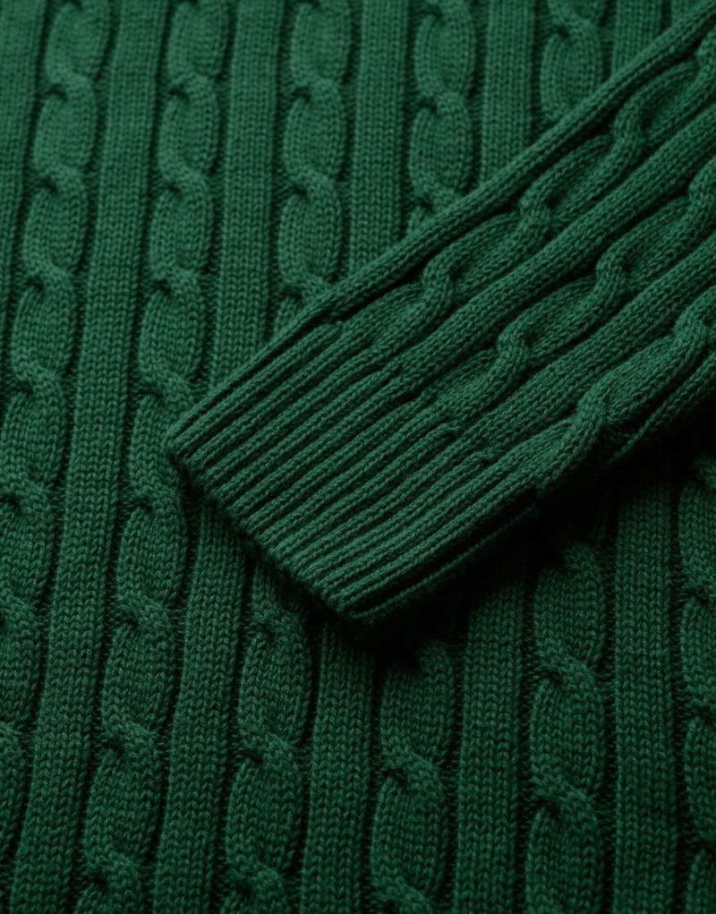 Slouchy Cable Knit Jumper In Dark Green