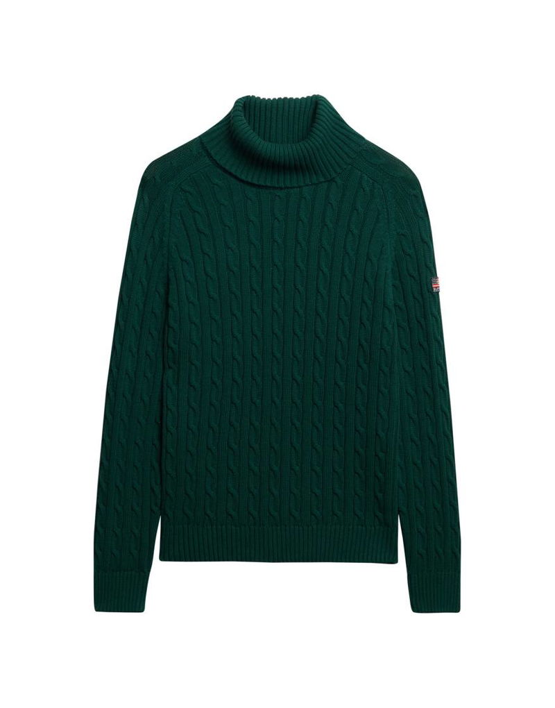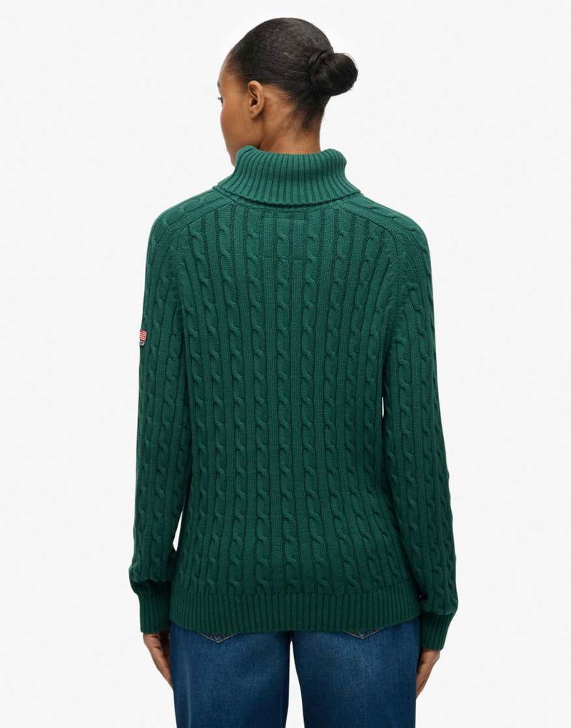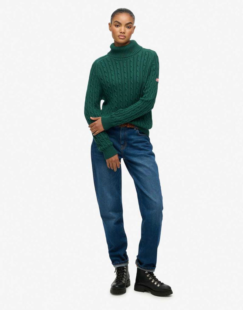 Slouchy Cable Roll Neck Jumper In Darkest Pine Green