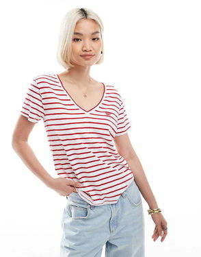 Square neck Short sleeves Logo embroidery Lace and lettuce-edge trims Regular fit.