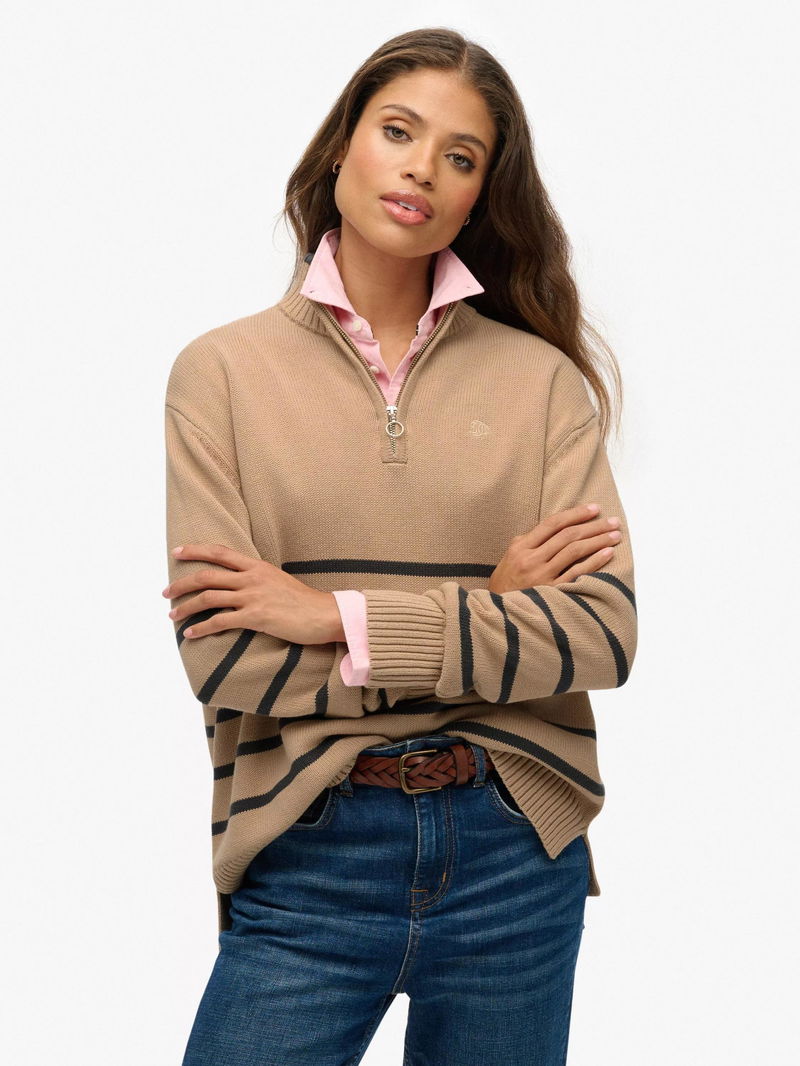 Stripe 1/2 Zip Knitted Jumper
