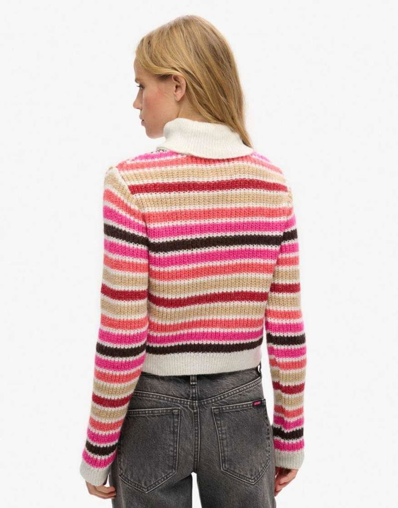 Stripe Cropped Roll Neck Jumper In Ecru Stripe