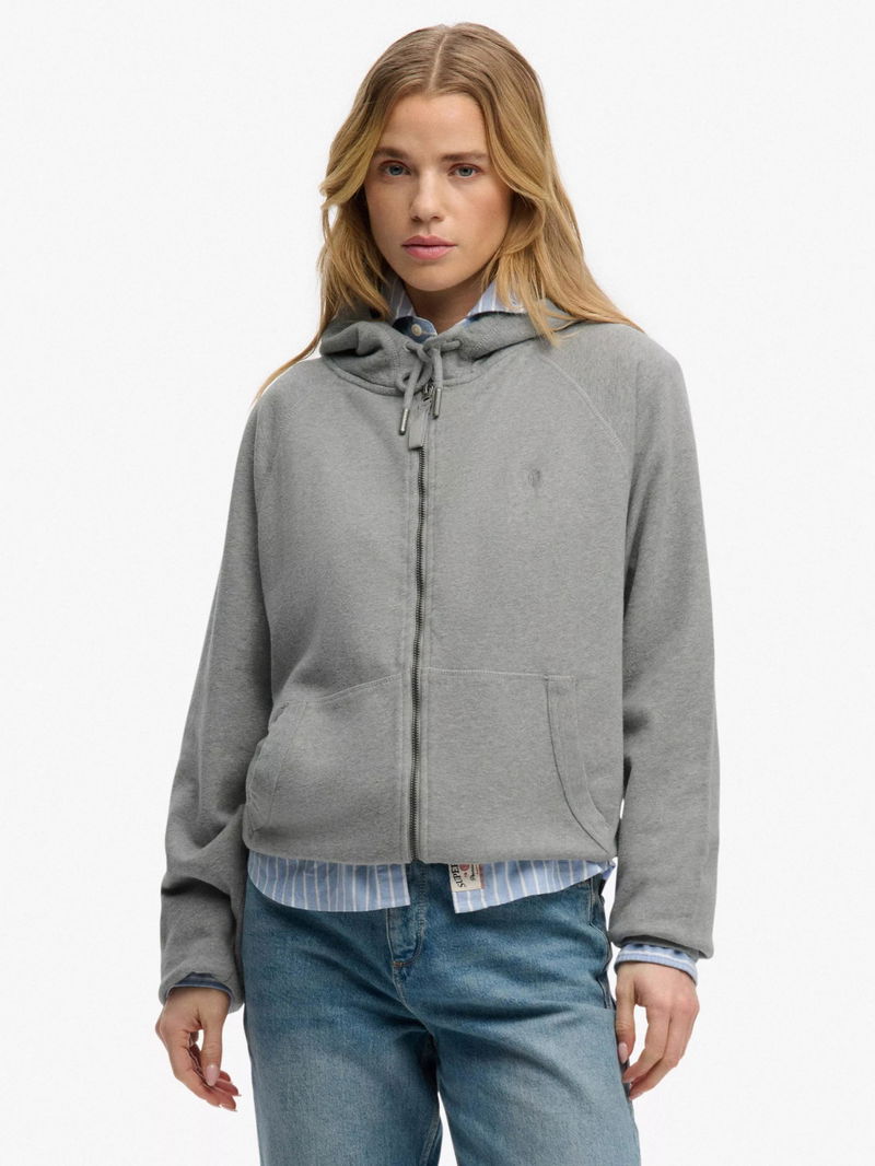 Studios Relaxed Zip Hoodie, Grey Marl