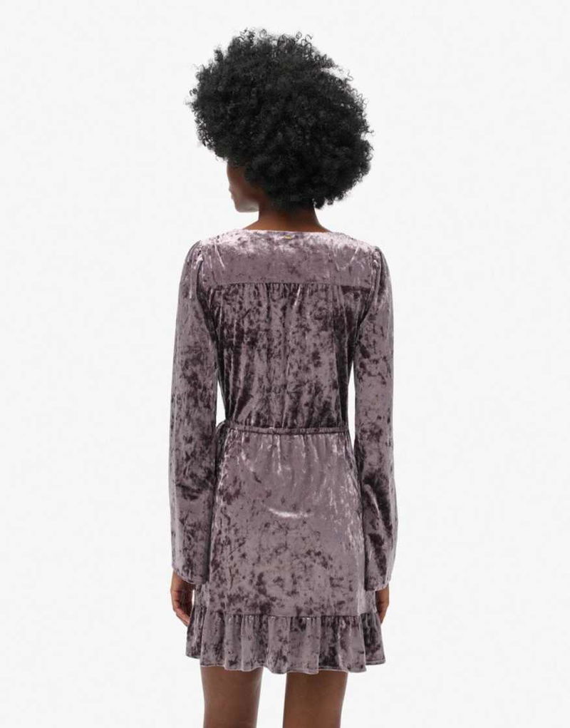 Velvet Wrap Mini Dress In Rock Dark Grey