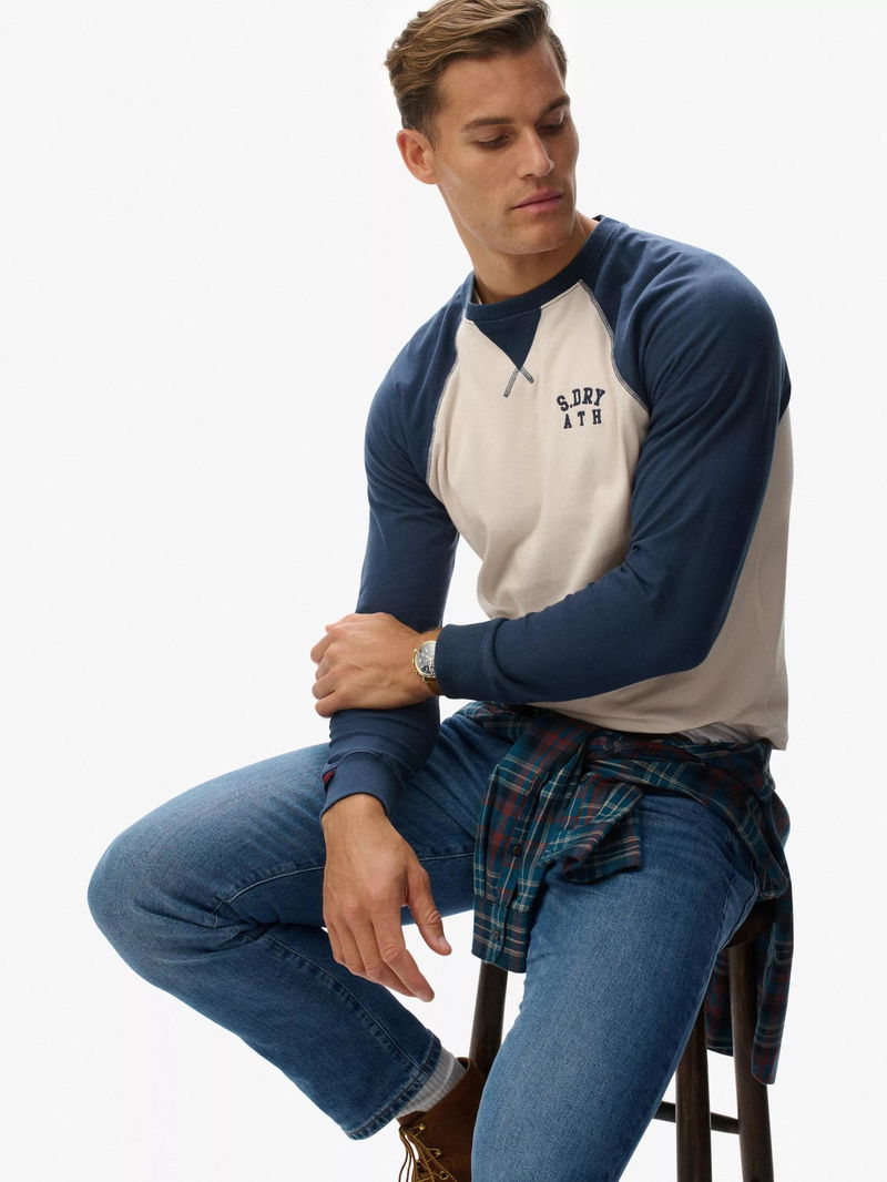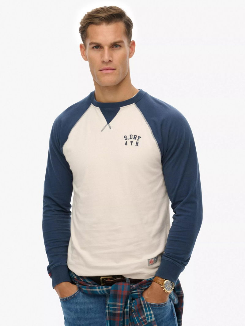 Vintage Athletic Baseball Sweatshirt, White Sand/Navy