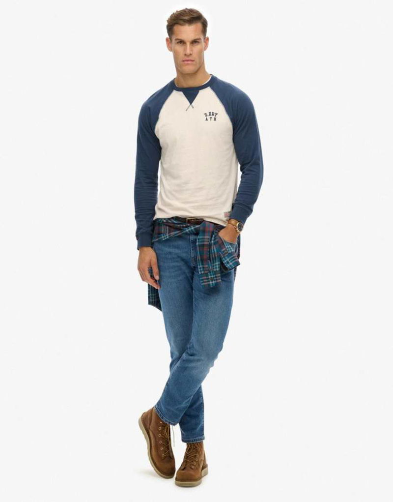 Vintage Athletic Baseball Top In White Sand/lauren Navy