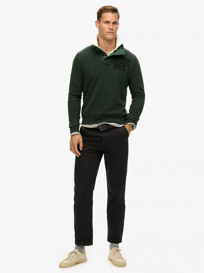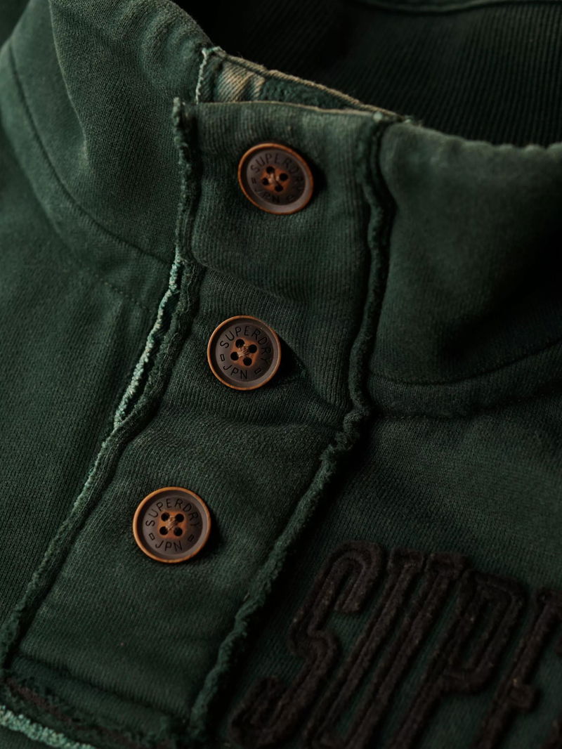 Vintage Athletic Half-Button Cotton Jumper, Academy Dark Green