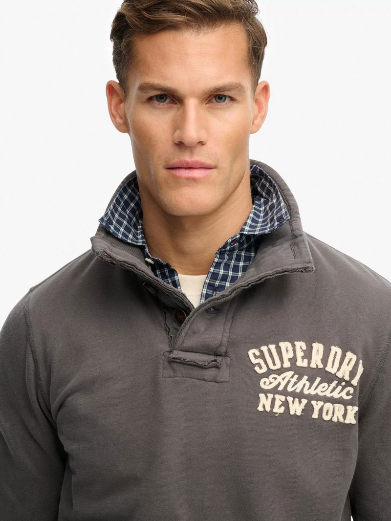 Vintage Athletic Henley Sweatshirt, Dark Shadow Grey