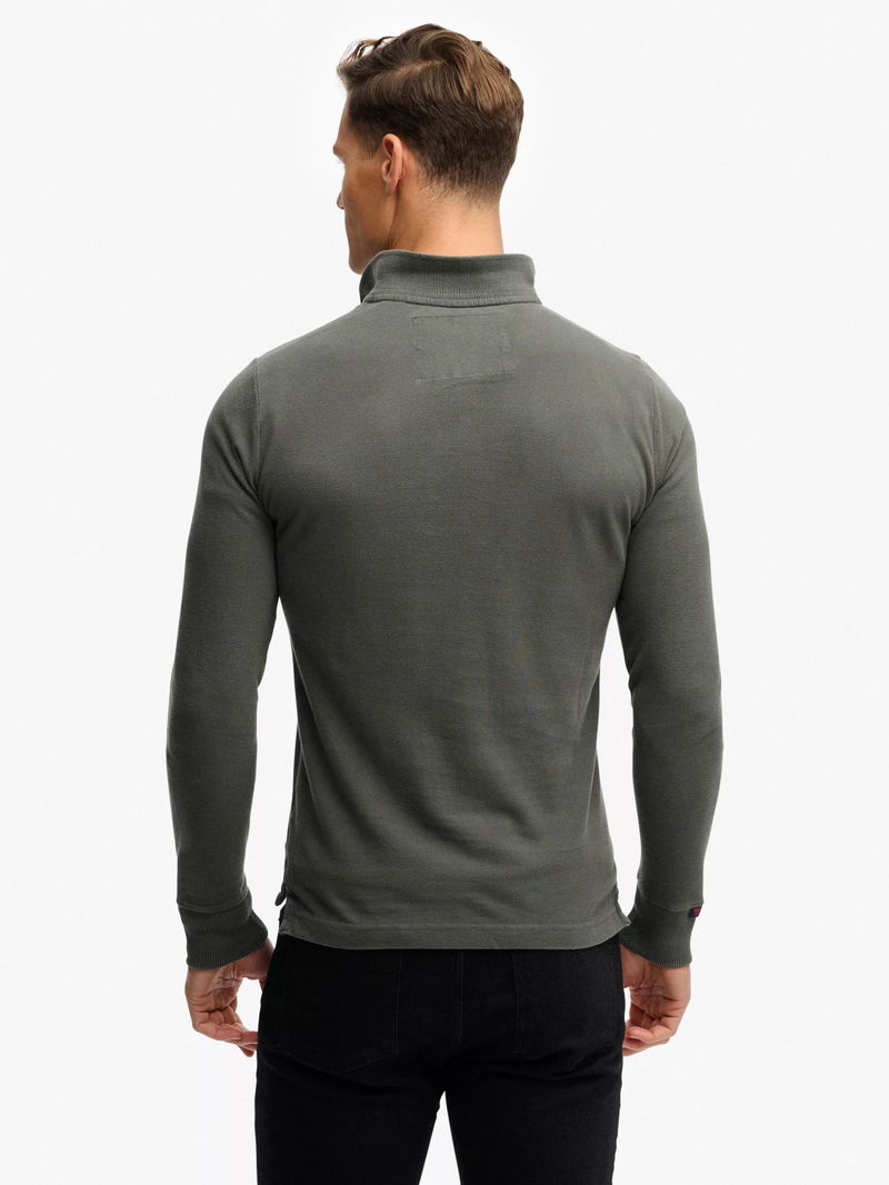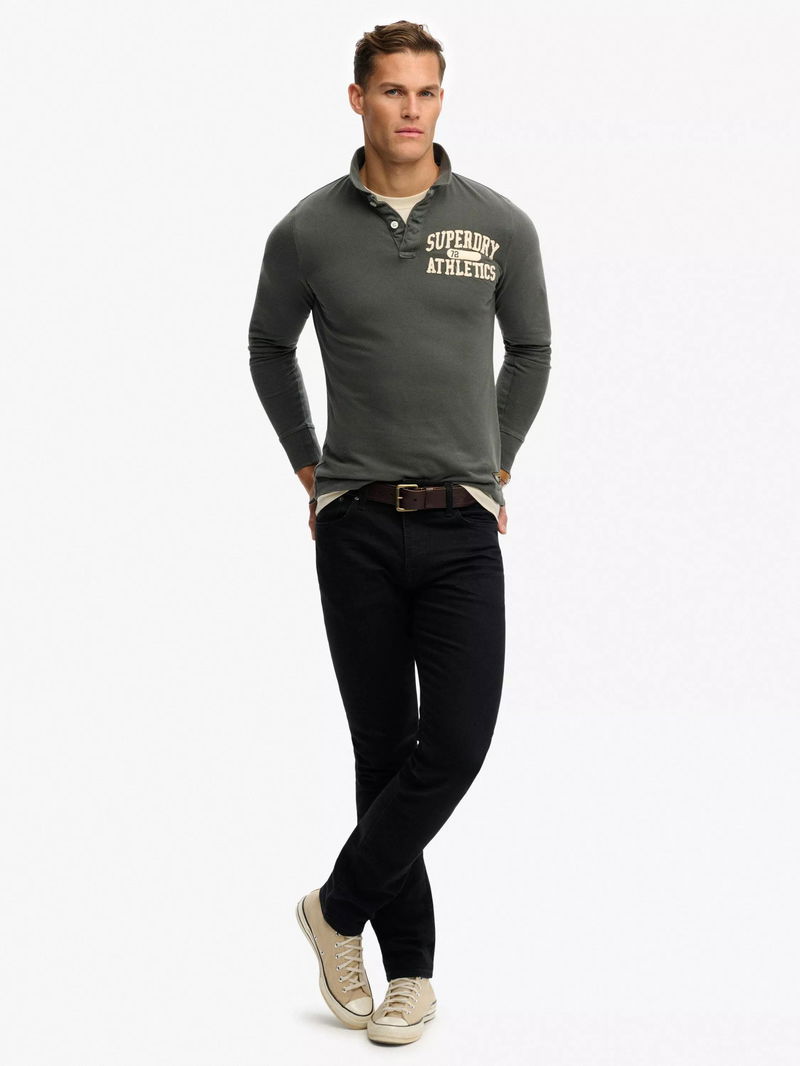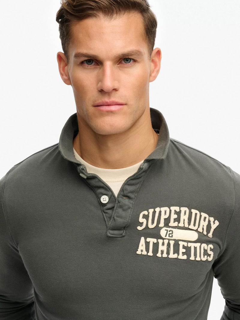 Vintage Athletic Long Sleeve Polo Shirt, Dark Shadow Grey