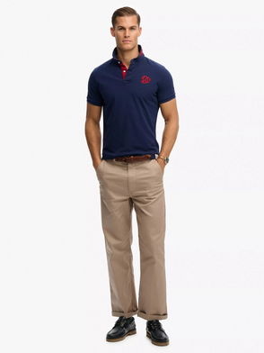 Update your polo collection this season with this classic slim fit polo shirt from Superdry. Featuring a single collar with button fastenings and side split seams, this polo is stamped with Superdry's iconic logo upon the chest.