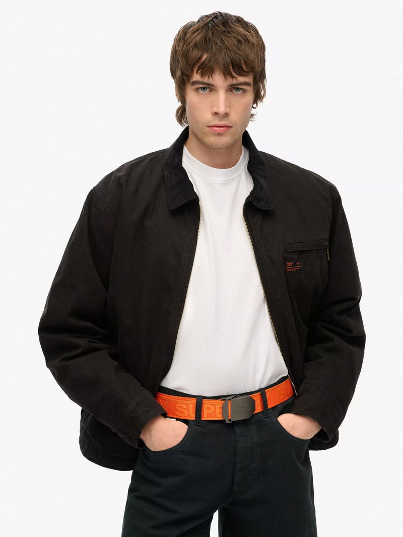 The Workwear Webbing Belt is a statement piece and a necessity all in one. Curated with an eye-catching debossed logo buckle, you can pair it with any outfit to show off your authentic style. Branded metal buckle with clasp fastening Branded belt strap