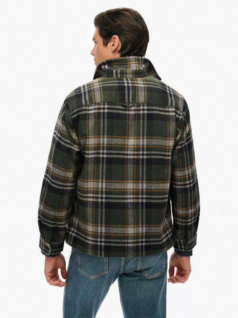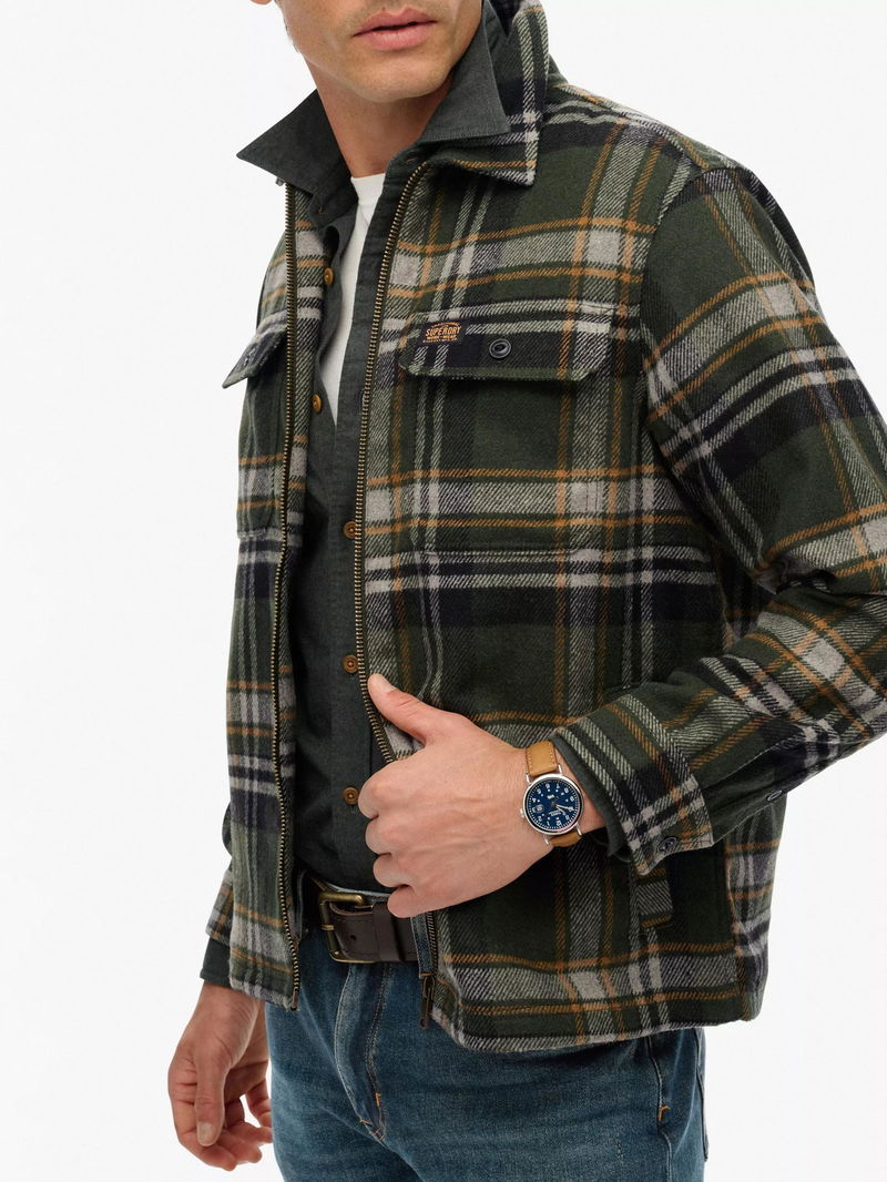 Zip Through Wool Blend Check Overshirt, Buckshot/Olive