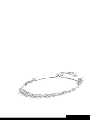 Made for everyday elegance, this rhodium plated bracelet exudes the simplicity of the Imber family. The design features a gradient of clear round-cut crystals, each placed in a modern bezel setting on a soft chain, with a sliding closure for easy wearability.
