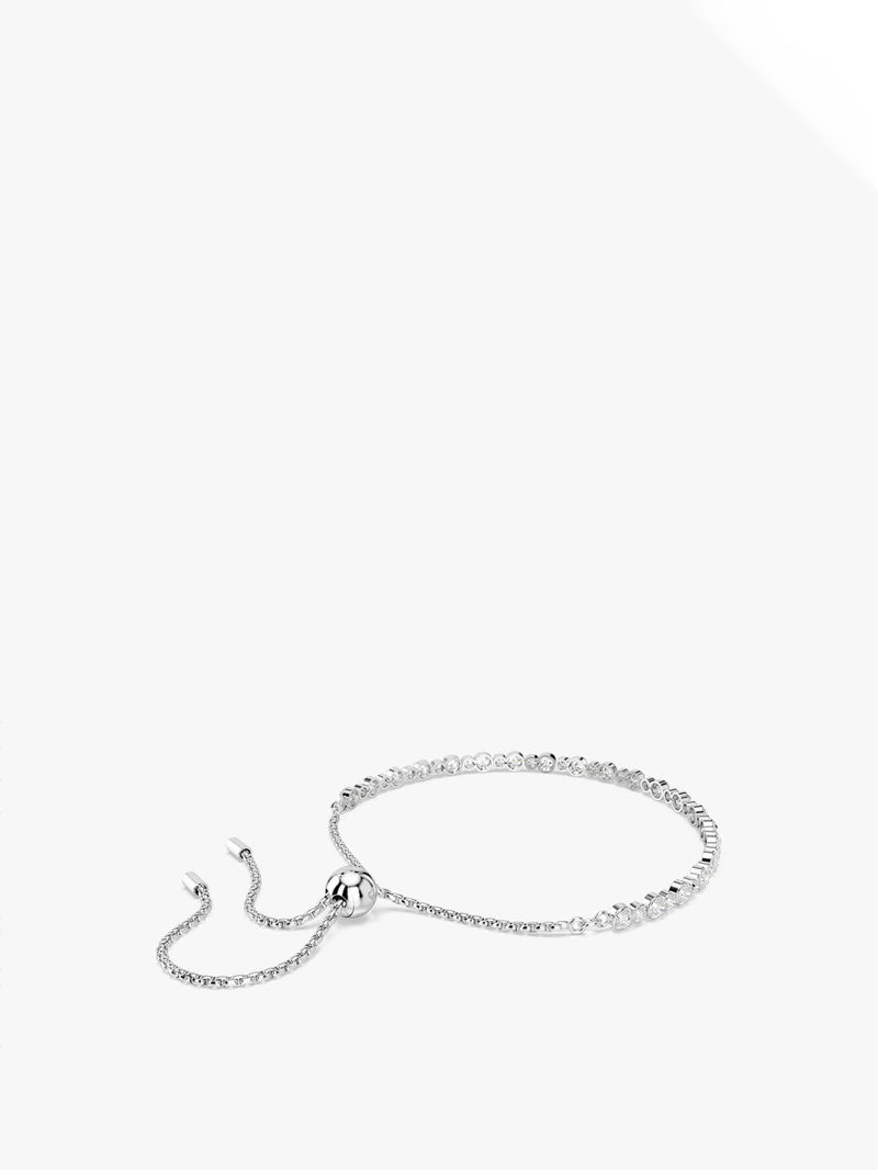 Infused with subtle elegance and timeless charm, this delicate cupchain bracelet would make an ideal gift for yourself or someone you love. The design combines clear Swarovski Zirconia and rhodium plating, finished with an adjustable sliding closure to fit any wrist size. The perfect partner for everyday outfits, it stacks easily with other bracelets for an all-over look of luxury.