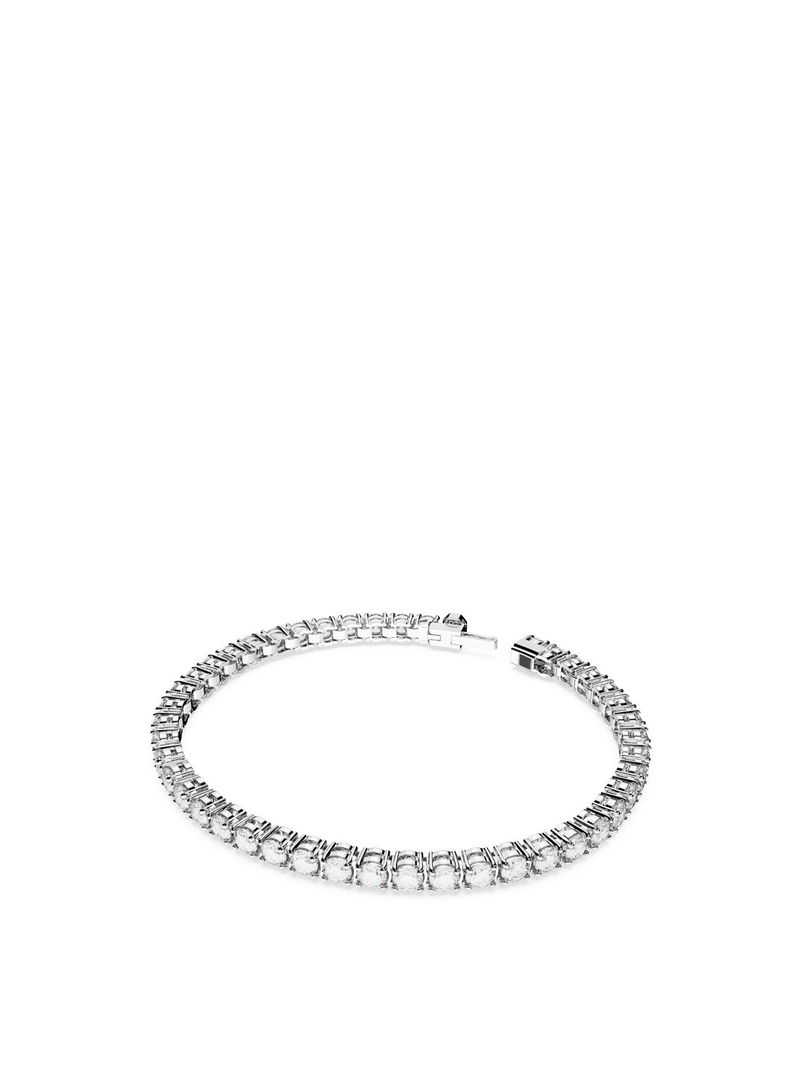 This shimmering Matrix Tennis bracelet delivers the classic combination of dazzling clear stones and cool rhodium plating, an enduring look that never goes out of style.
