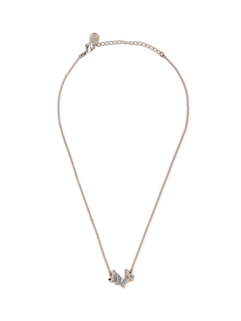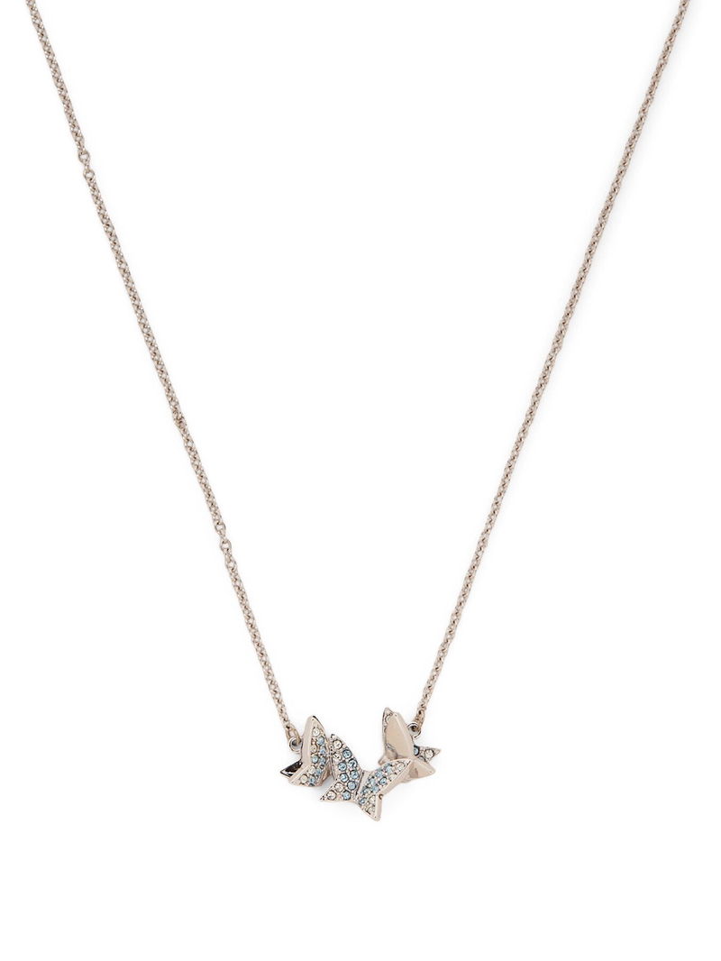 This elegant Lilia necklace features a central motif of floating butterflies adorned with shimmering blue pavé on a rhodium plated setting. This is an easy choice to enhance your outfit with a touch of nature-inspired wonder.
