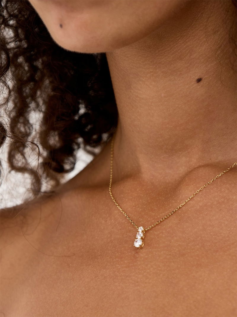 The Stila Pendant Attract necklace boasts a streamlined, contemporary design that brings a gentle yet striking accent to any wardrobe.
