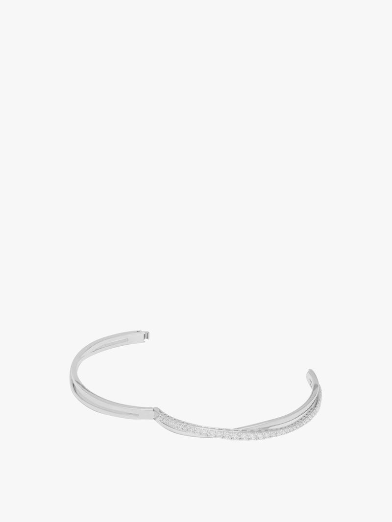 This twisted bangle by Swarovski exhibits is a beautiful modern interpretation of the spiral bracelet trend. A line of sparkling white stones follows the curving lines of this bangle which will complement your everyday looks with a brilliant touch.