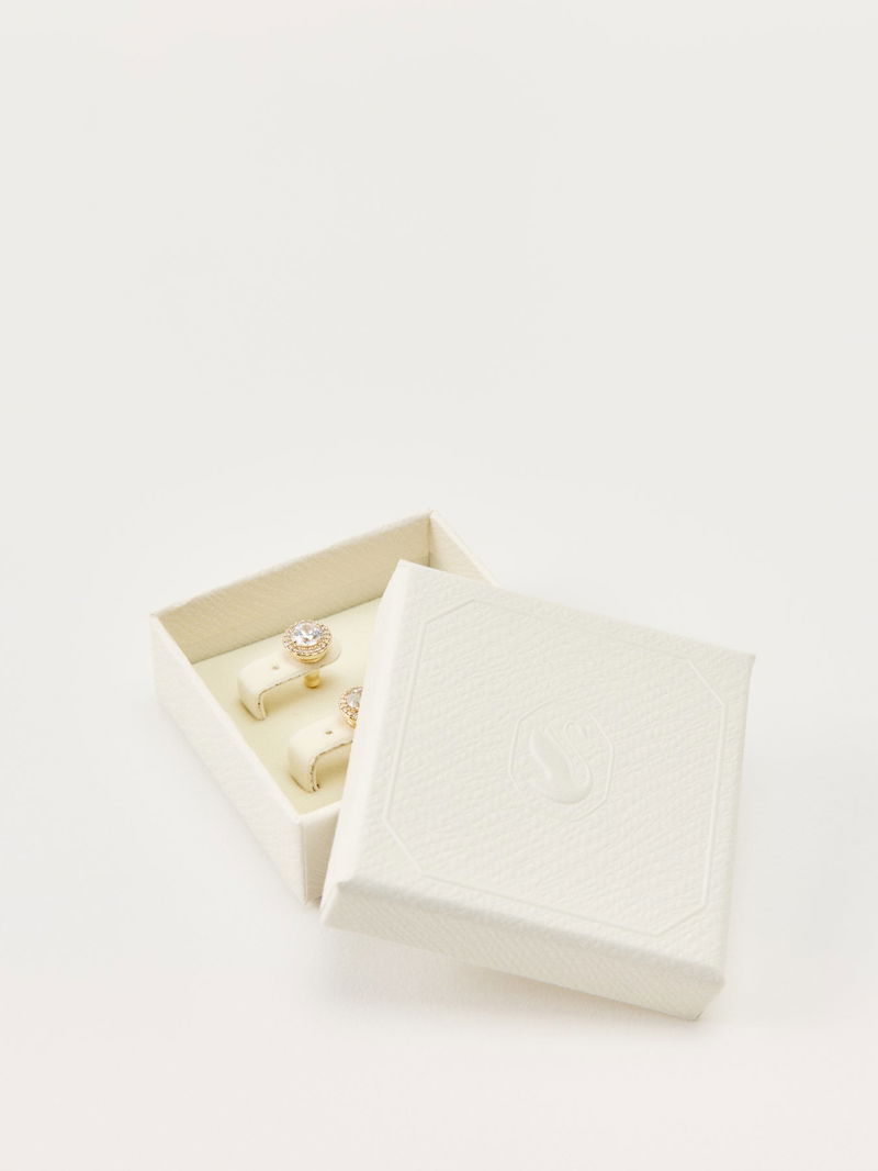 The Una Pave Stud Earrings by Swarovski capture the brand’s signature radiance in gold-tone plating with precision-cut crystals. Shaped into a delicate motif, they bring subtle brilliance to both day and evening dressing. A luminous addition to any collection.