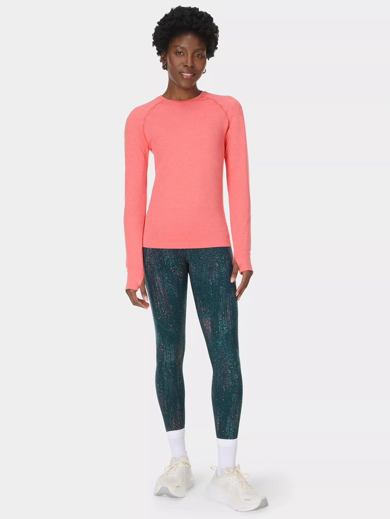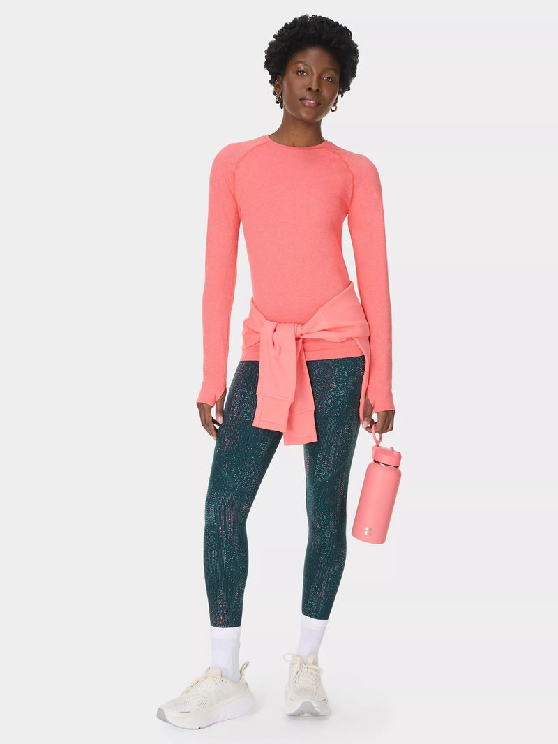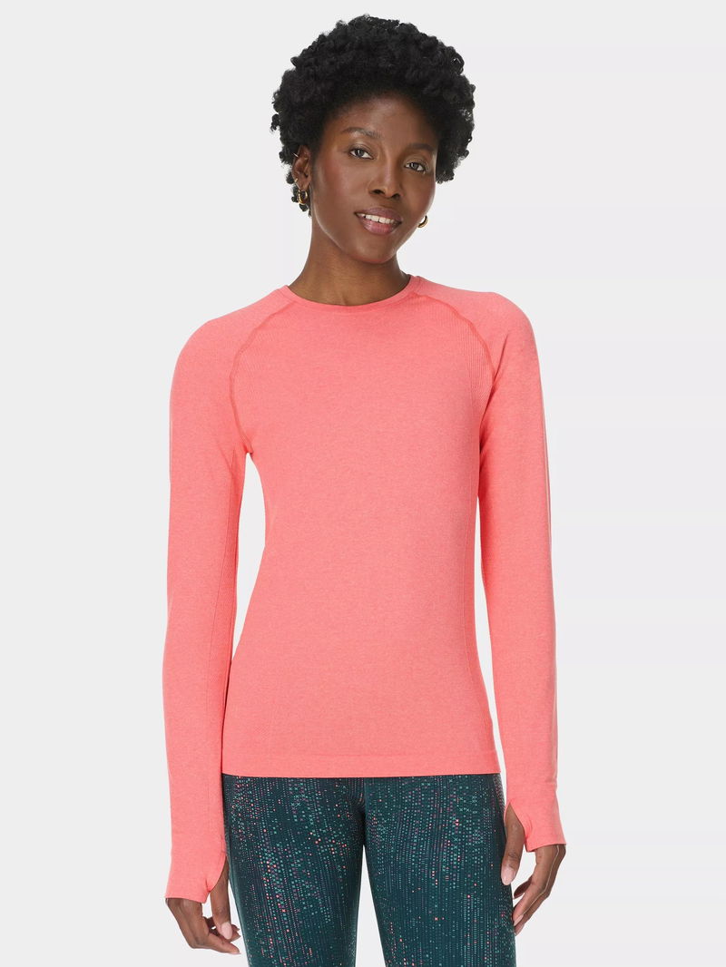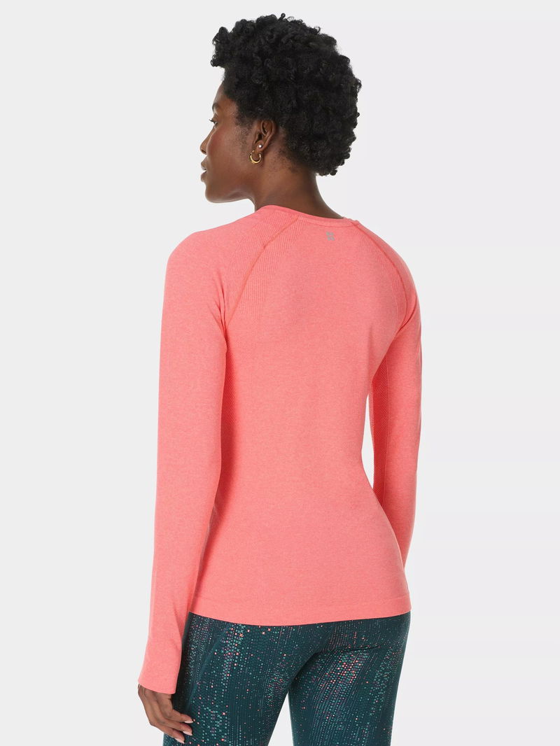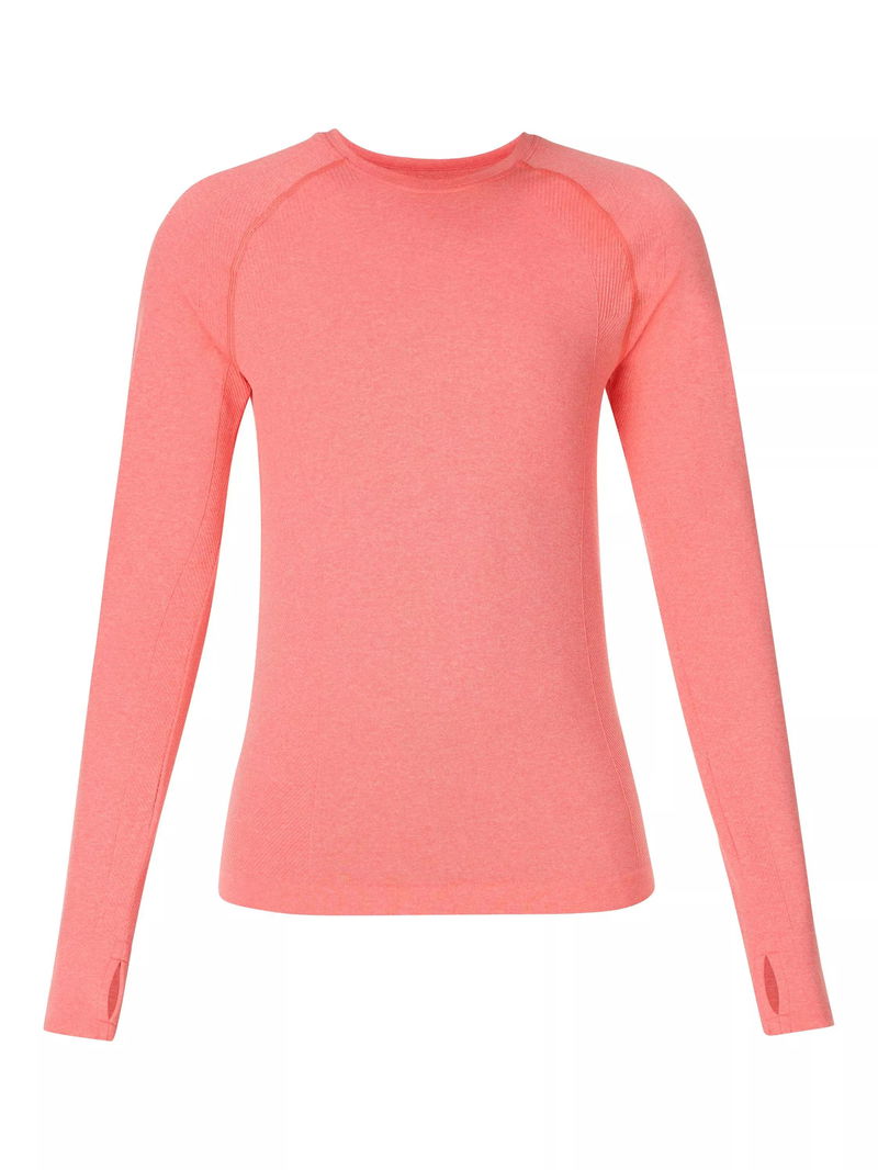 Athlete Seamless Long Sleeve Workout Top, Apricot Orange Melon Pink Marl