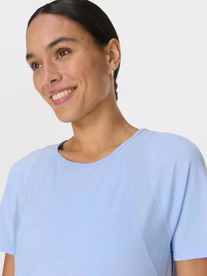 A short sleeve staple for high impact exercise that's both sweat wicking and lightweight. In a body skimming fit with a crew neck, it's designed with mesh panelling at the back for ventilation in a high-sweat area and reflective logo.