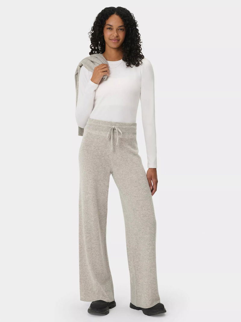 Luxe lounging trousers made from 100% cashmere. Designed in a relaxed, wide-leg fit with an elasticated waist. A tie at the waist ensures the perfect fit.