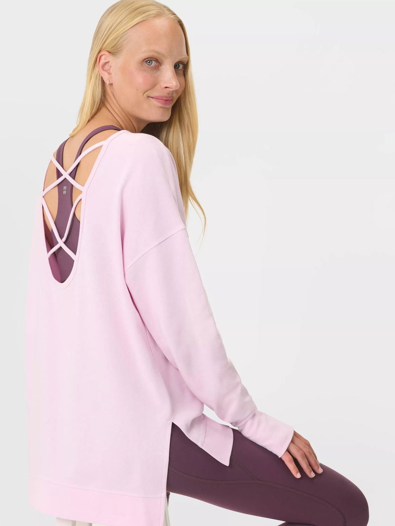 Cross Back Cotton Blend Sweatshirt, Frost Pink