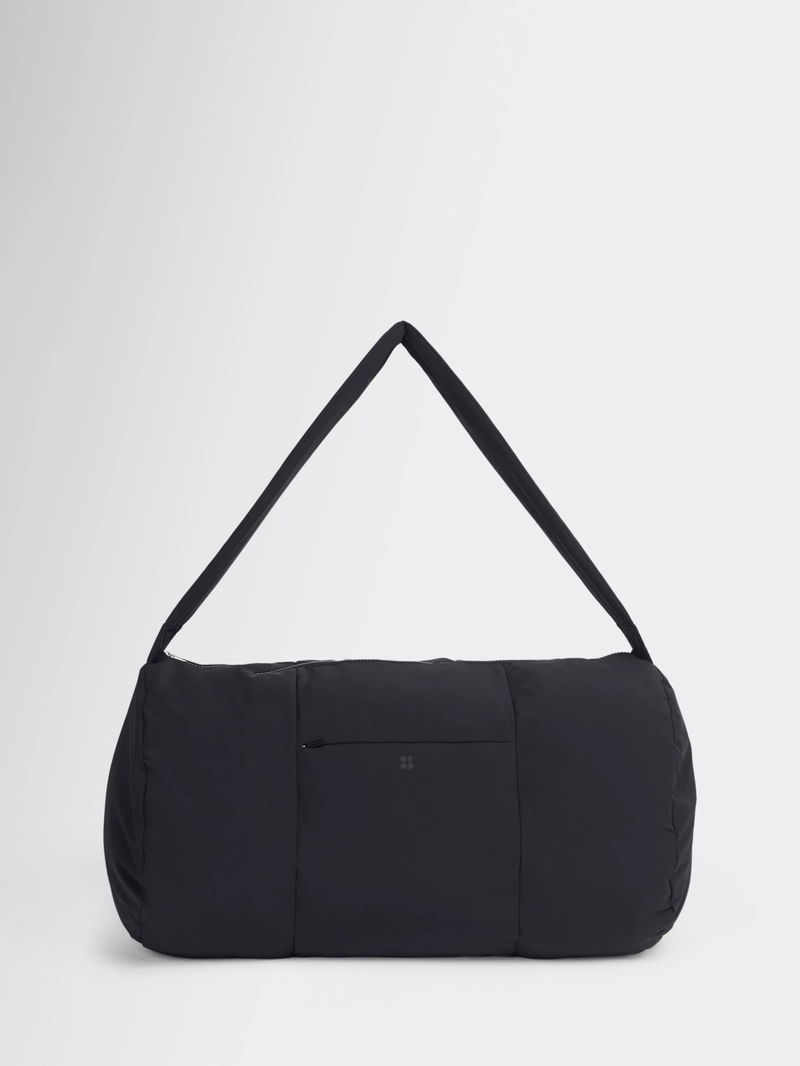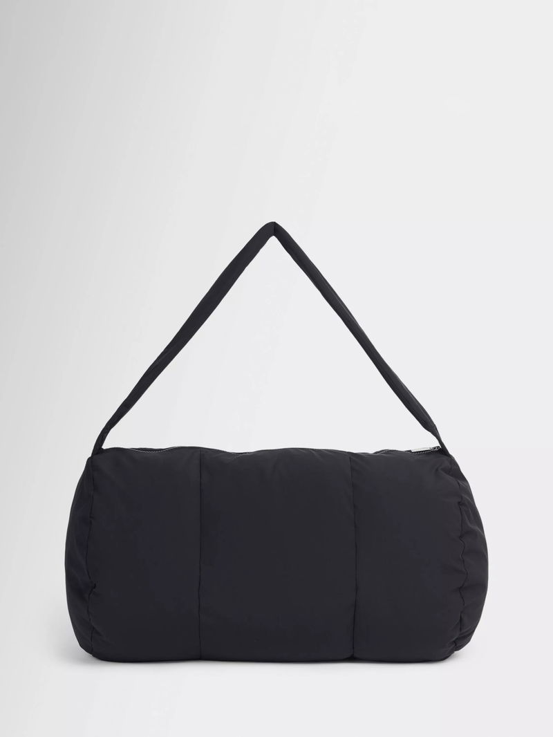 Made from water-resistant fabric. Classic barrel shape with pillow padding. Zip fastening with zip pocket on the front and slip pocket inside.