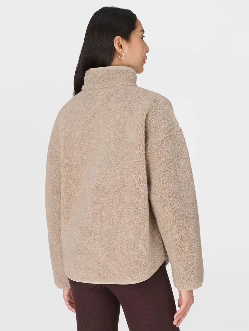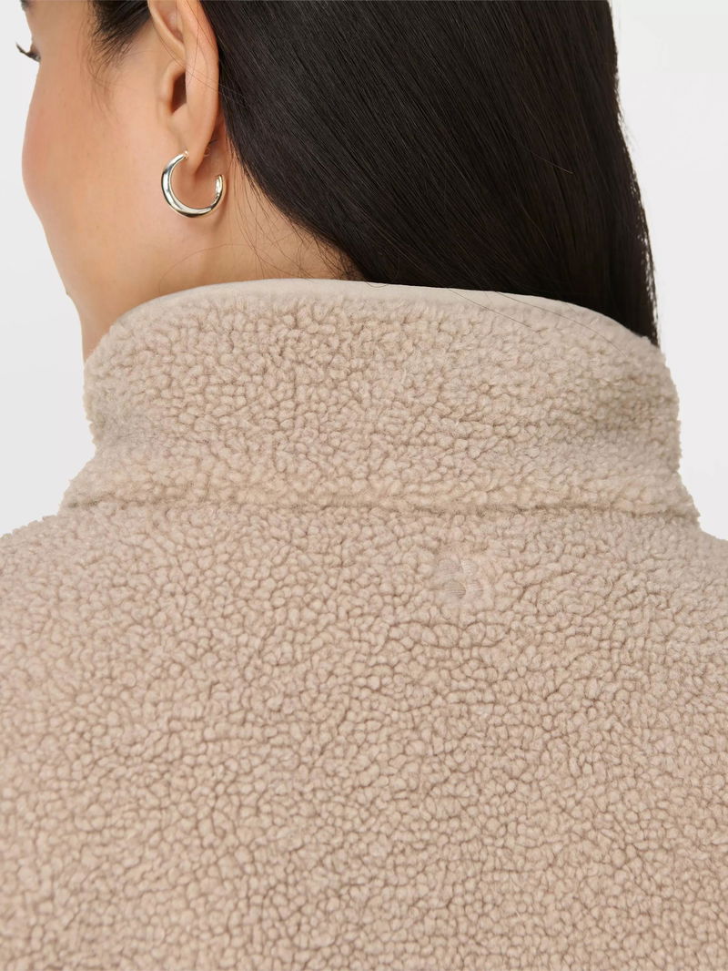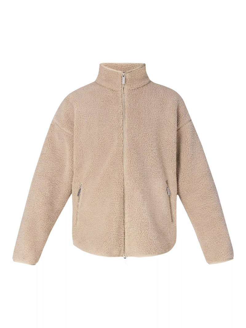 A plush fleece for effortless winter layering. Made from a soft, textured fleece with contrast nylon detailing. Relaxed fit with funnel neck, dropped shoulder and curved hem. Two front slip pockets. Embroidered logo detail.