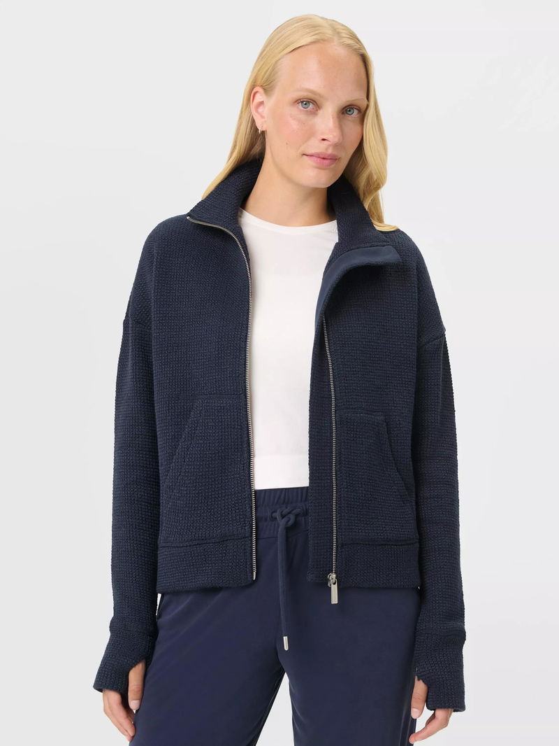 A new addition to the brand's bestselling Restful Boucle collection. Made from a soft cotton blend. Cut to a relaxed fit with dropped shoulders, blouson sleeves, a wide collar and two front pockets.