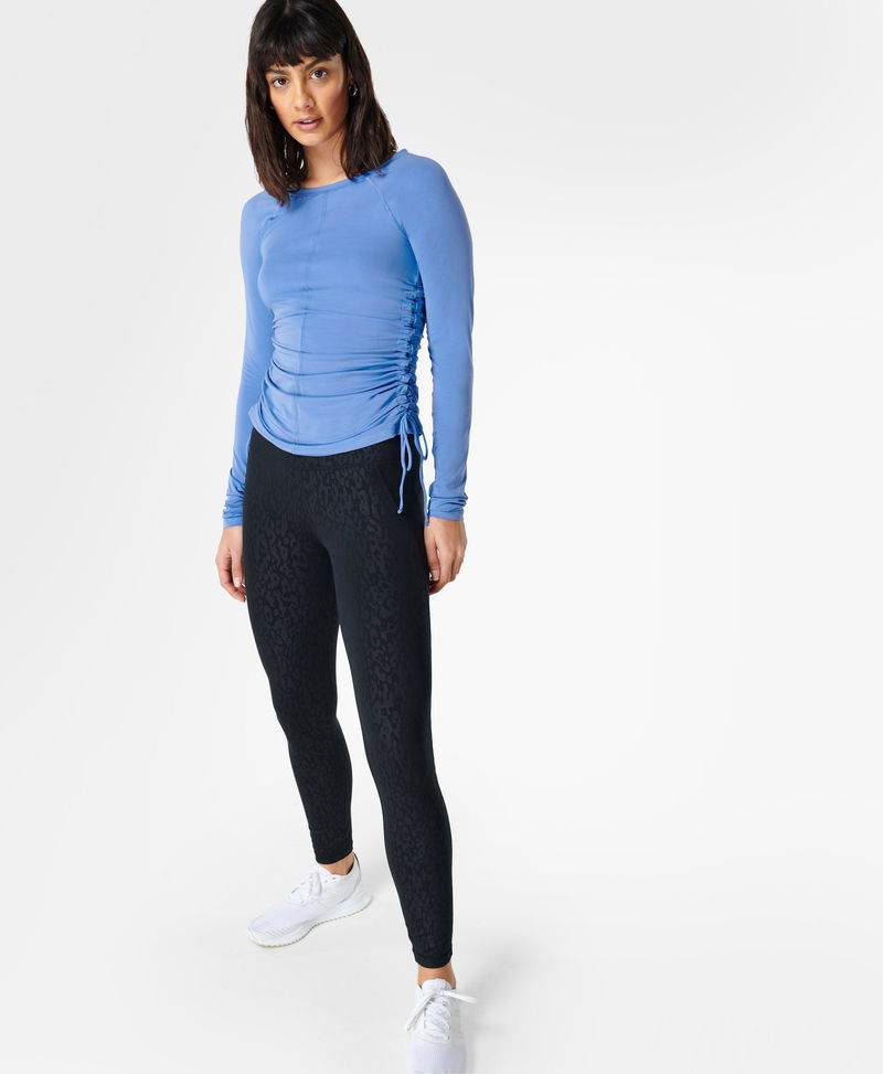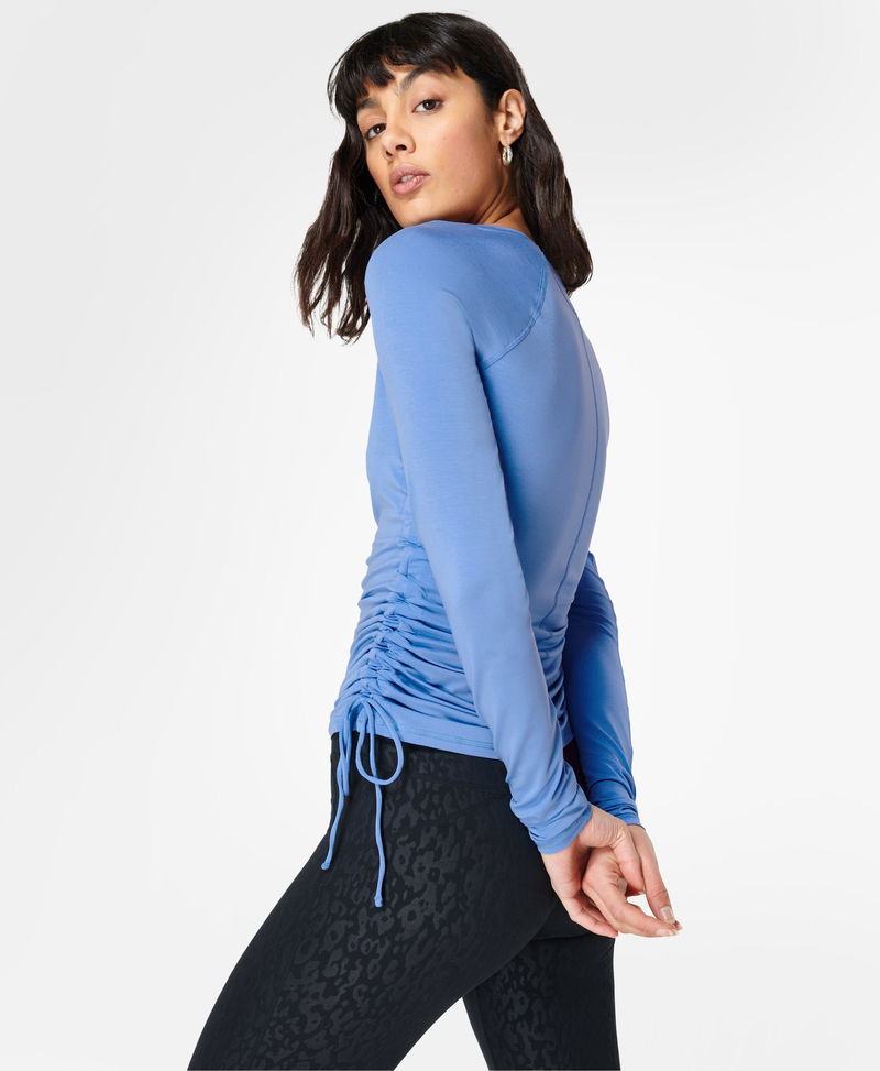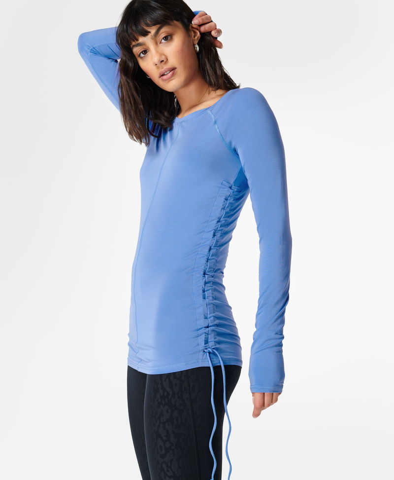 Sweaty Betty’s feminine long-sleeved top for studio classes and more. Soft, smooth Tencel™ blend made using plant fibres. Soft, smooth Tencel™ blend made using plant fibres Slim fit with a wide crew neck and raglan sleeves. Ruched sides with adjustable ties. Seam detailing at the front and back.