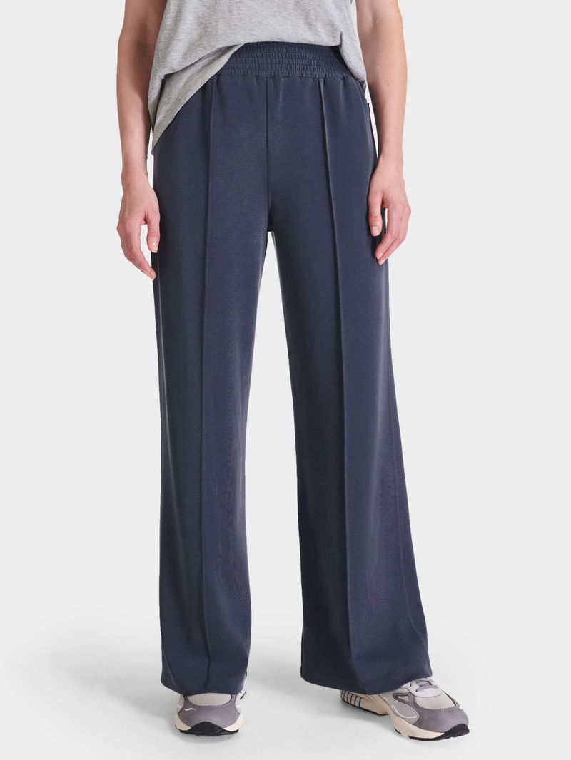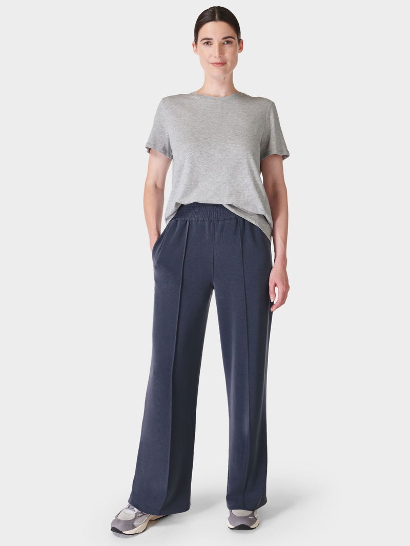 A new summer addition to the Sand Wash collection. The peachy soft 54% recycled fabric has a lightweight, scuba-like feel. Cut to a relaxed, wide leg silhouette with pin tuck detailing at the centre, they have a thick shirred elastic waistband with a high rise for a flattering fit. Two side pockets and one back pocket.