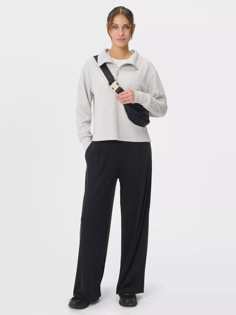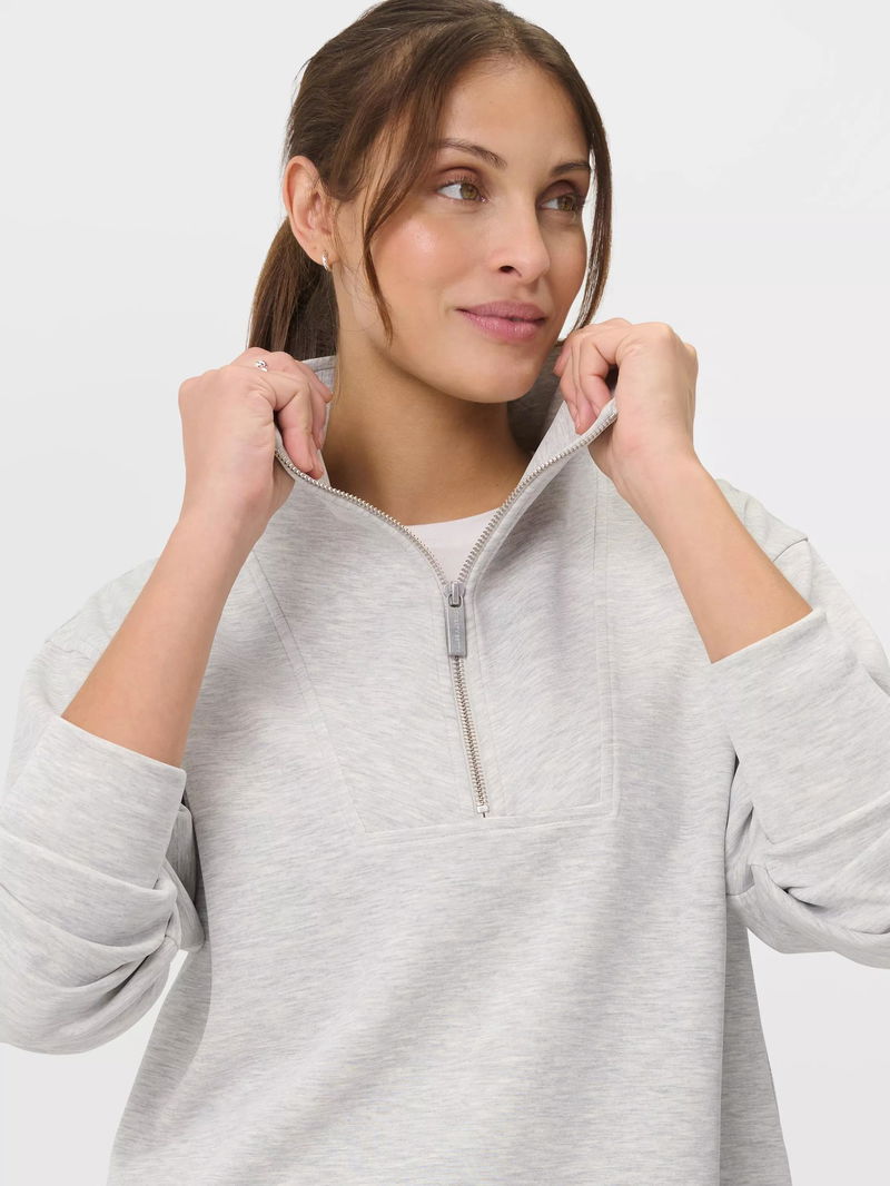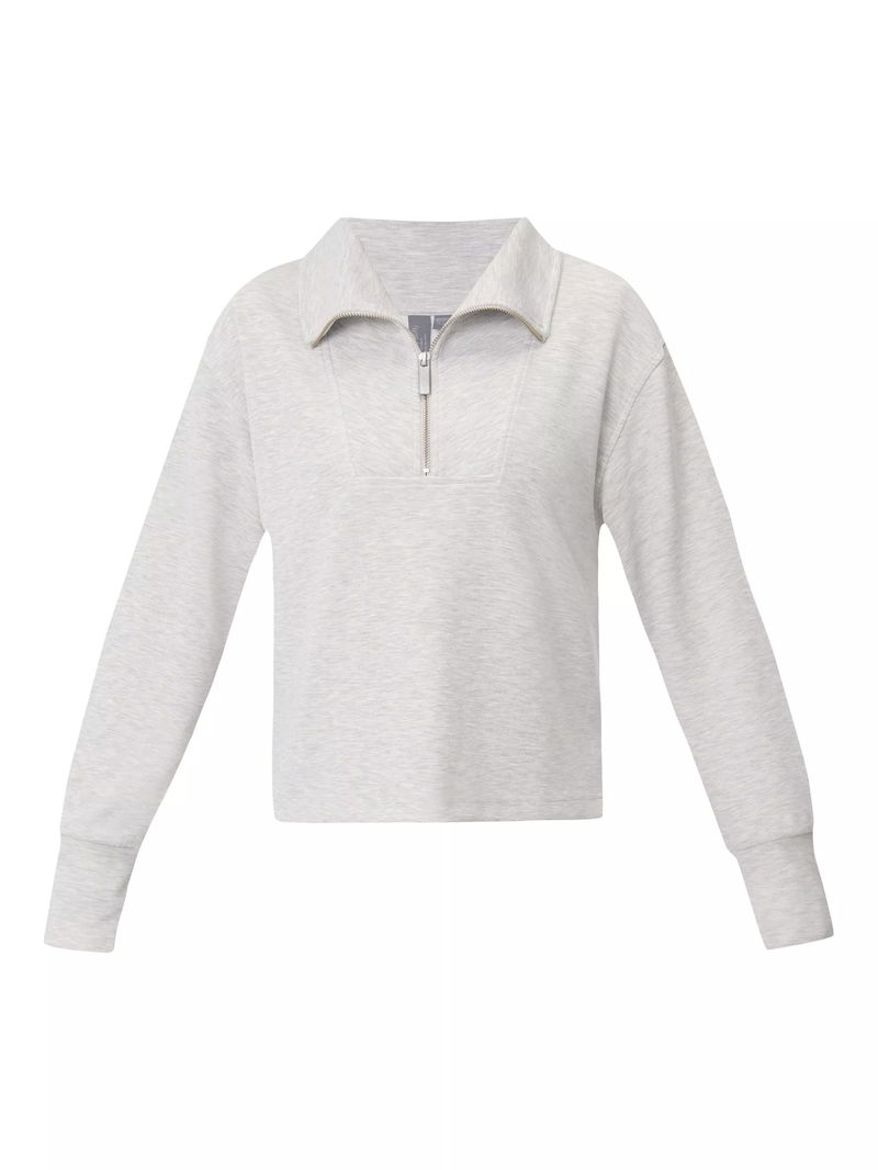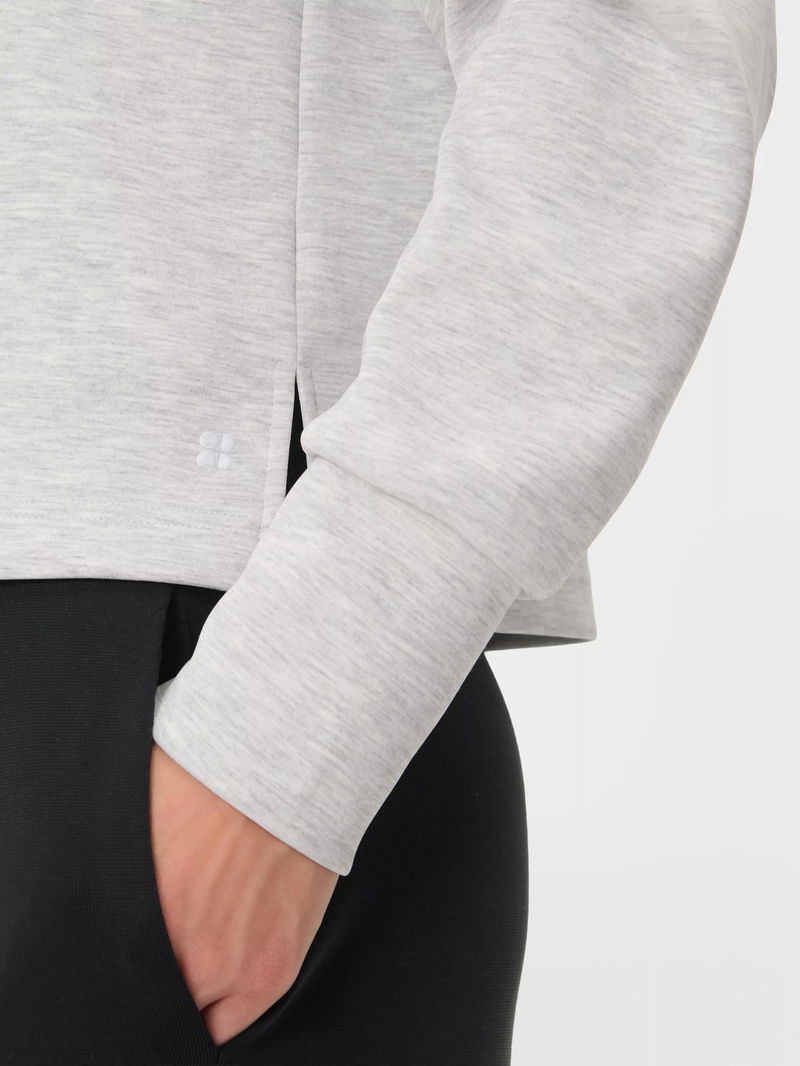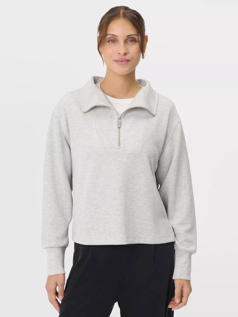 A cropped cut of the Sand Wash Sweatshirt. Peachy soft fabric has a lightweight, scuba-like feel. Relaxed, cropped fit with dropped shoulders and full-fashioned sleeves. Wide collar with half zip.