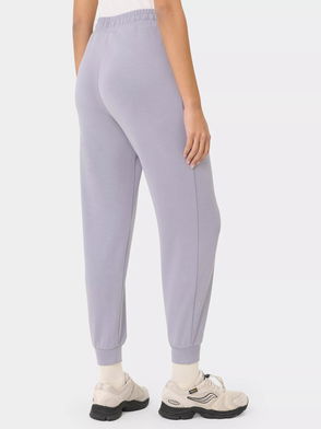 A pair of studio-to-street lifestyle trousers. The peachy soft 57% recycled fabric has a scuba-like feel. Designed with an elasticated waist with an adjustable tie and elasticated cuffs. Two deep side pockets with stitch detailing. Cut for a slim fit.