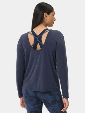 A new addition to the soft studio collection. Fabric is ultra-soft and sweat-wicking. Relaxed, boxy fit with classic crew neck. Open back with twist detail.