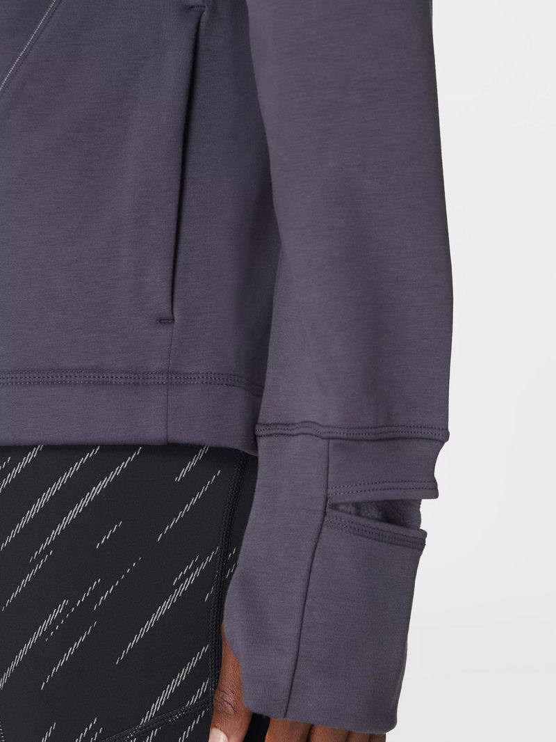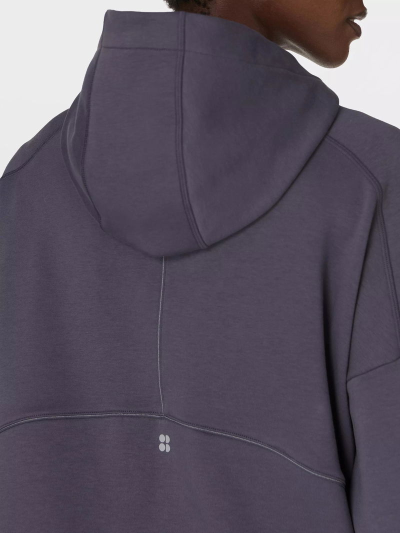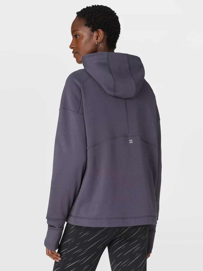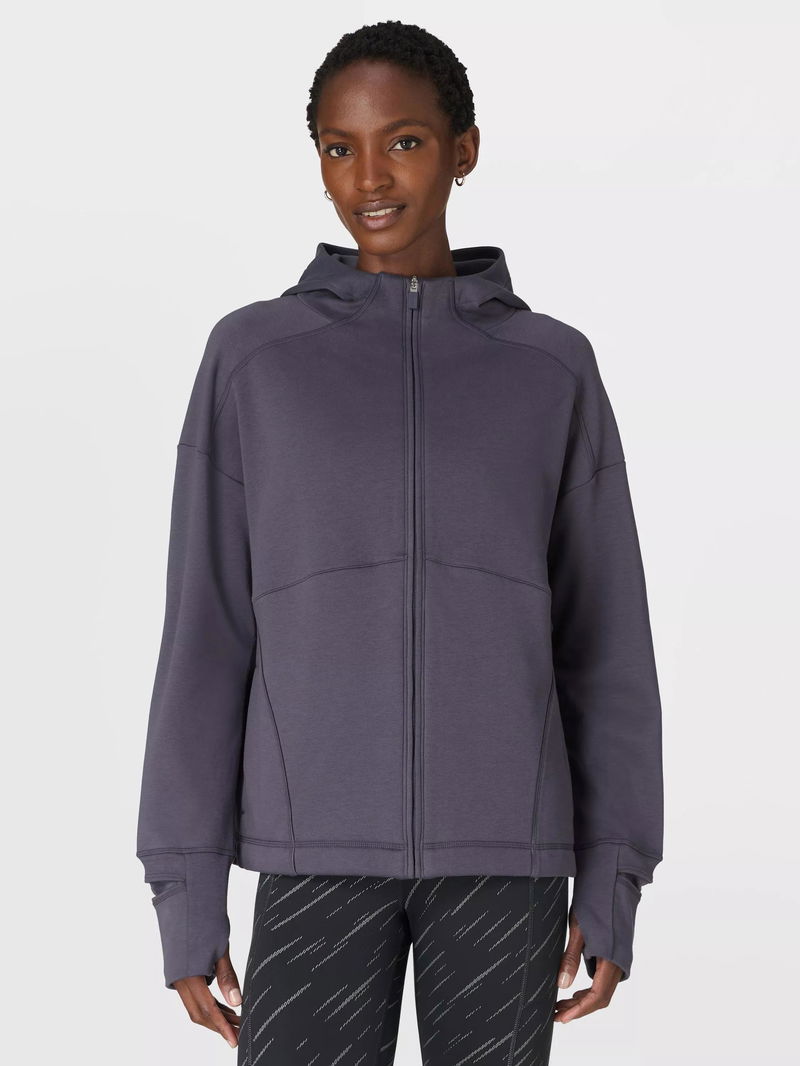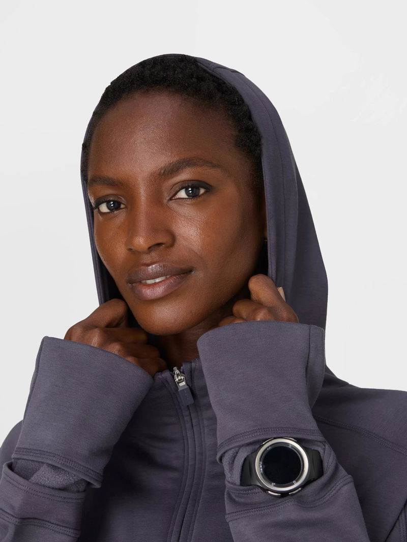 Sweaty Betty's technical training hoodie, perfect for warm-ups and cool-downs. Made from sweat-wicking fabric with a soft fleece lining, it's cut in a relaxed, boxy fit with a funnel neck and hood. Reflective piping details provide extra visibility after dark. Complete with two front pockets, thumbholes and a watch opening at the cuffs.