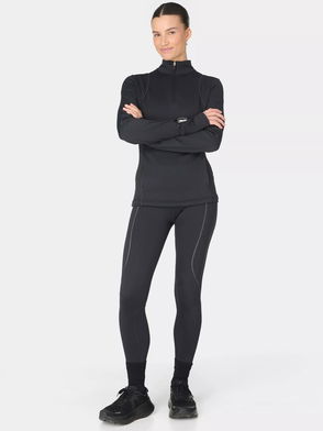 A mid layer designed for chilly outdoor runs. The 76% recycled fabric is warm, sweat-wicking and breathable. Cut to a flattering slim fit with full body zip and contouring seamlines. Reflective seams and detailing for visibility.