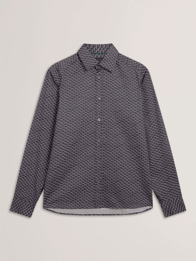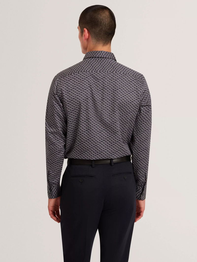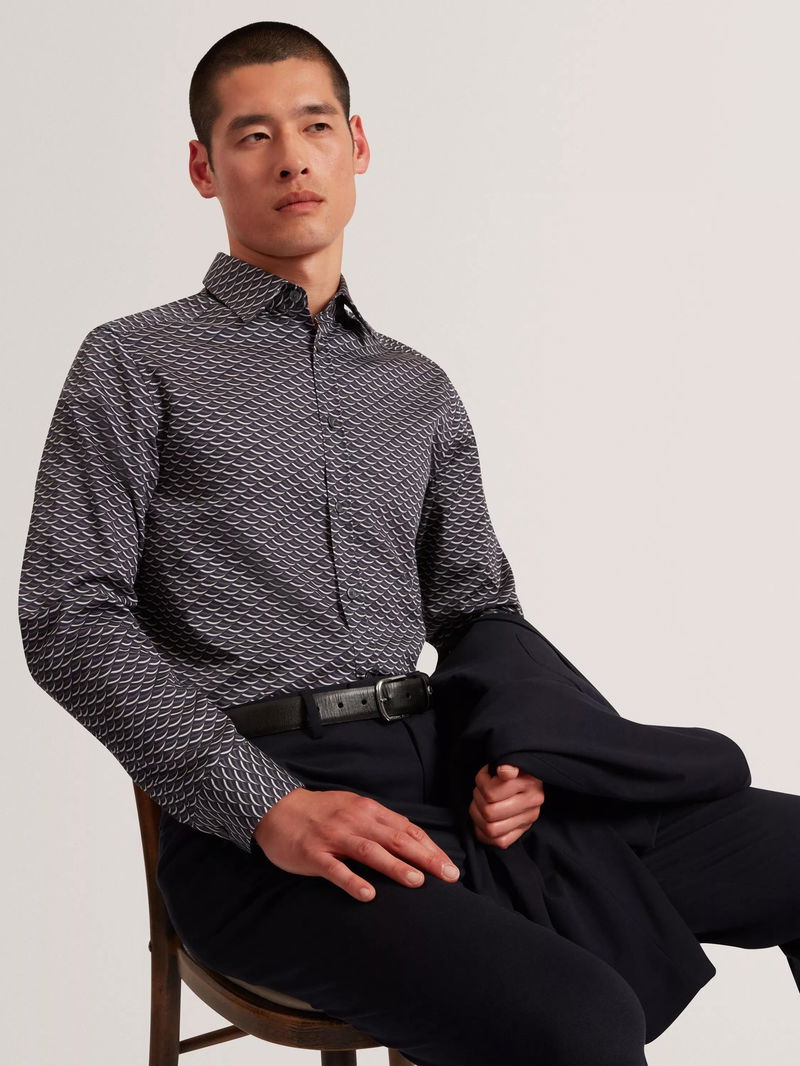This Ted Baker shirt adds personality to your day with its wave geo print and crisp collar. Soft cotton keeps you comfortable, while the regular cut ensures it suits any plan.