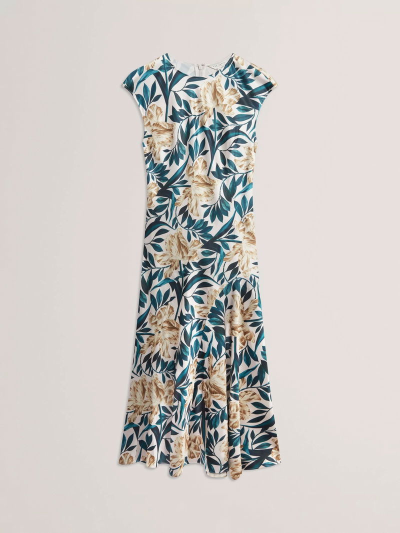 Aibee Cap Sleeve Floral Print Midi Dress, Multi