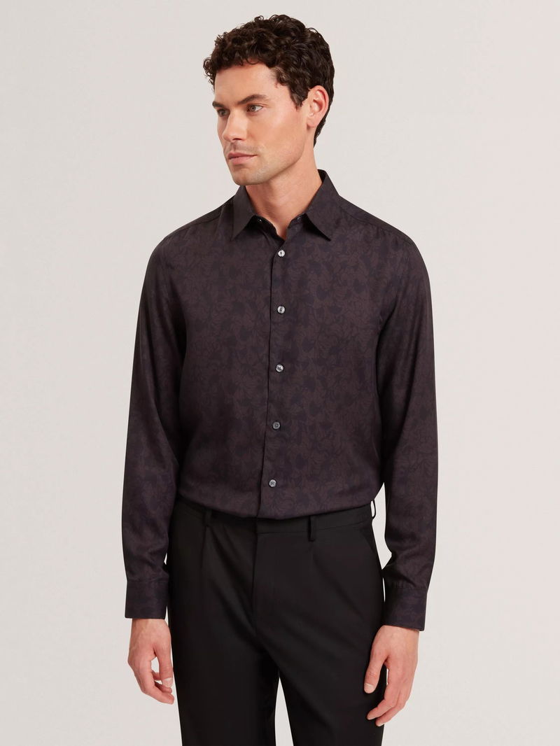 This long-sleeved Ted Baker shirt brings a fresh twist to your daily wardrobe. Soft lyocell fabric keeps you comfortable, while the tonal floral print adds smart style to your routine. Great for your next daytime plan or meeting.